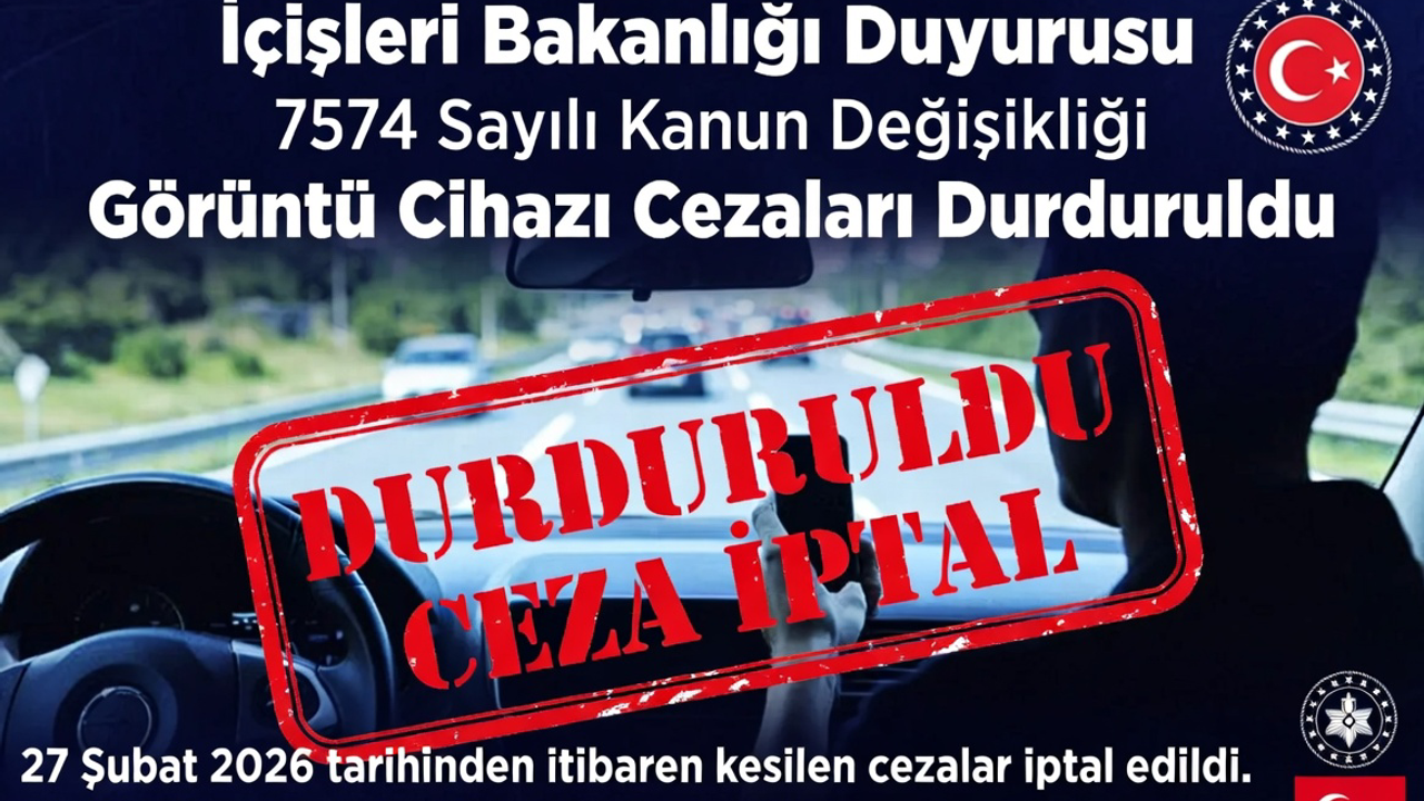 İçişleri Bakanlığı, 27 Şubat 2026 tarihinde Resmî Gazete’de yayımlanarak yürürlüğe giren 7574 Sayılı Karayolları Trafik Kanunu’nda Değişiklik Yapılmasına Dair Kanun kapsamında uygulanan bazı yaptırımların durdurulduğunu duyurdu.