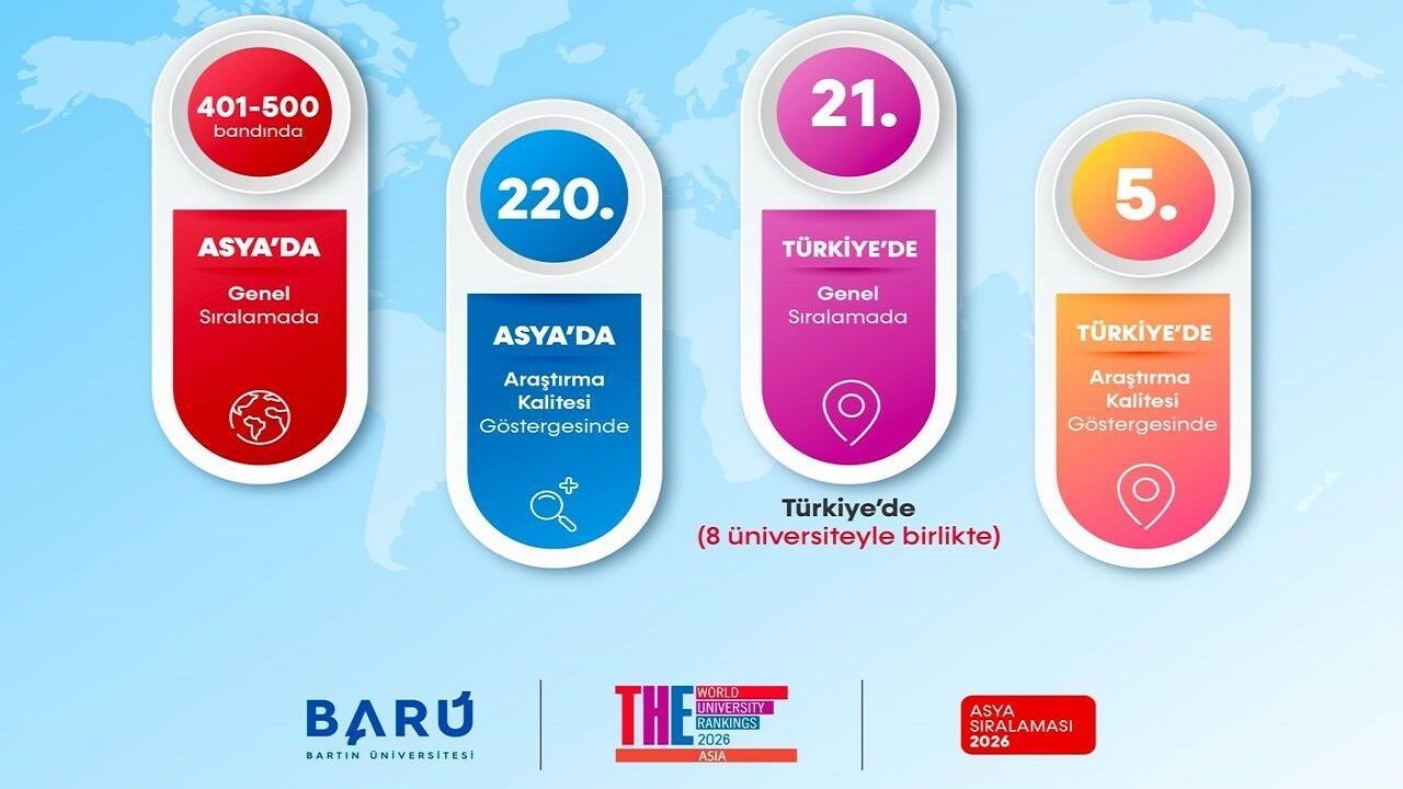 Bartın Üniversitesi (BARÜ) dünyanın en iyi yükseköğretim kurumlarının değerlendirildiği Times Higher Education (THE) 2026 Asya Üniversite Sıralamalarnda yer alma başarısı gösterdi.