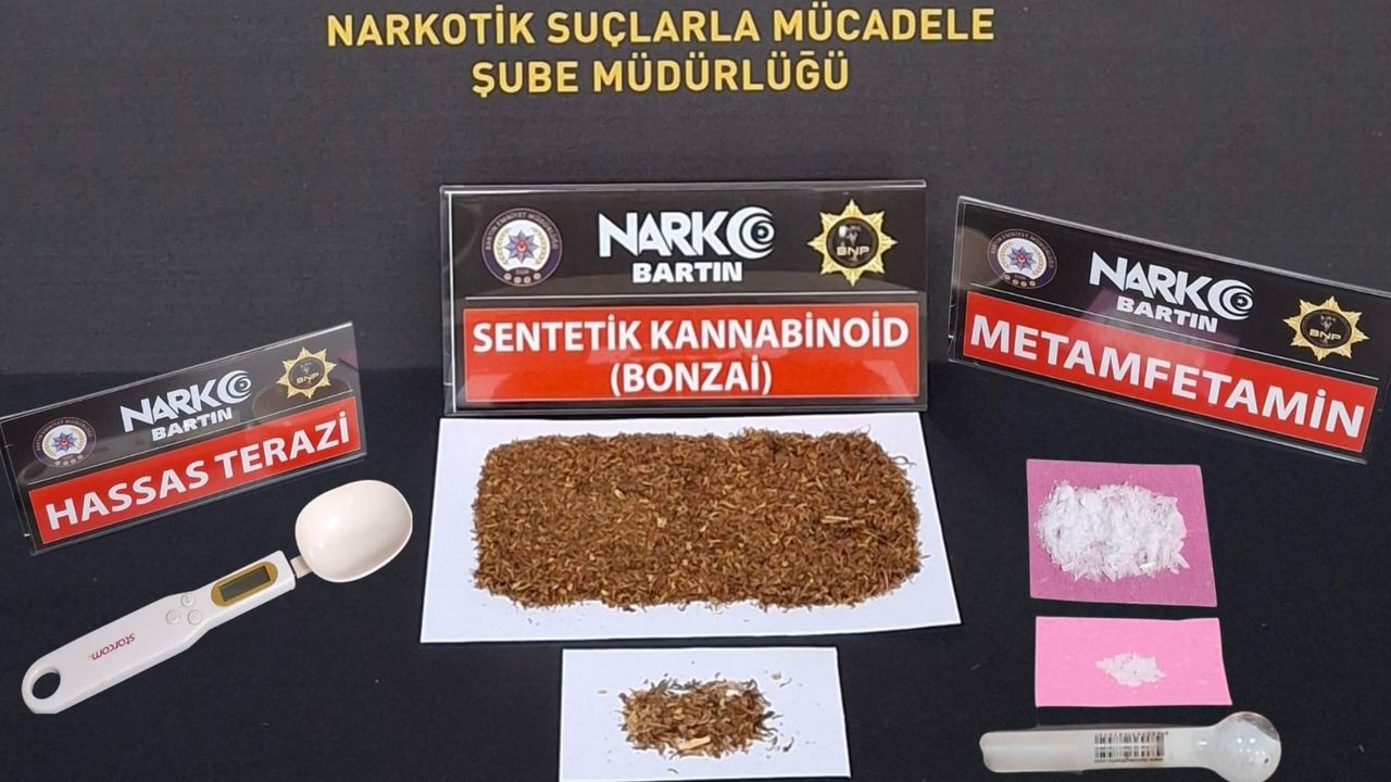 Bartın'da Narkotik Suçlarla Mücadele Şube Müdürlüğü ekipleri tarafından yapılan operasyonda, 23,40 gram sentetik kannabinoid maddesi, 4,46 gram metamfetamin maddesi, 1 adet hassas terazi ele geçirildi.