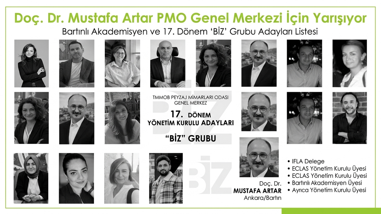 Peyzaj Mimarları Odası'nda 17. Dönem Heyecanı: Bartınlı akadaemisyen ve köşe yazarlarımızdan Doç. Dr. Mustafa Artar Genel Merkez Yönetimine Aday oldu.