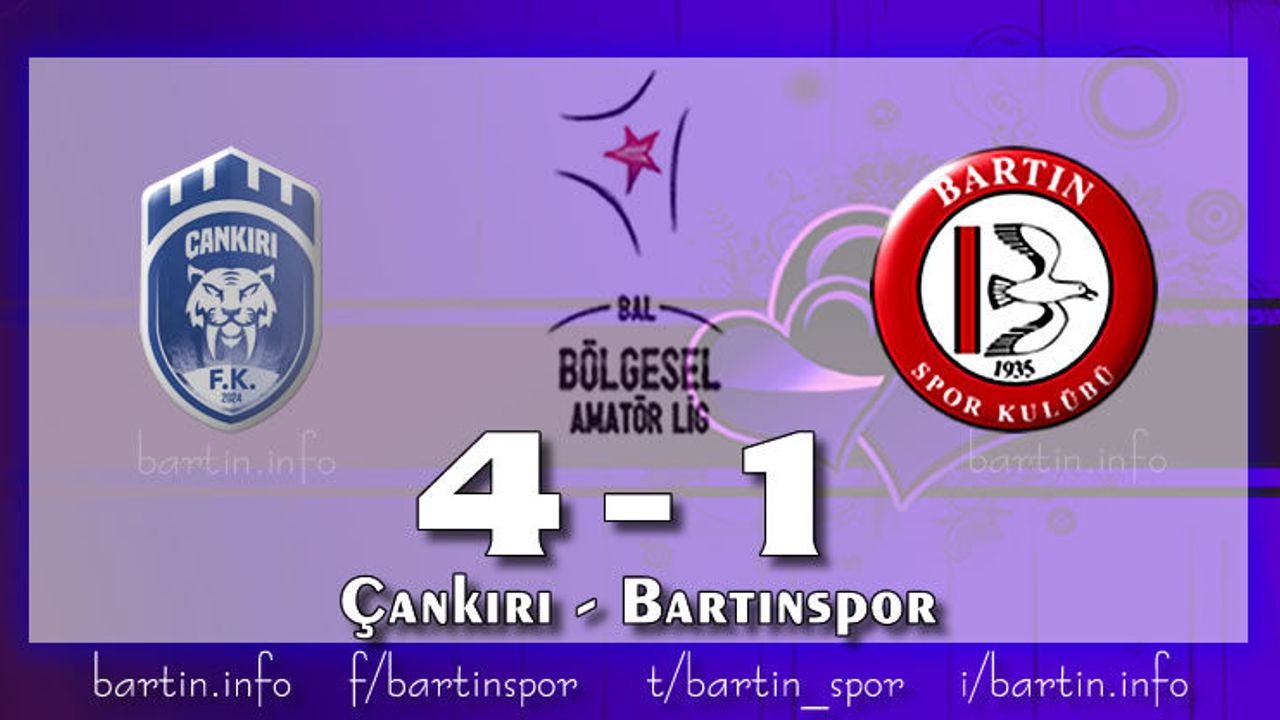 Bölgesel Amatör Lig (BAL) 4. Grup 21. hafta karşılaşmasında Bartınspor, deplasmanda karşılaştığı Çankırı Futbol Spor Kulübü’ne 4-1 mağlup olarak haftayı puansız kapattı.