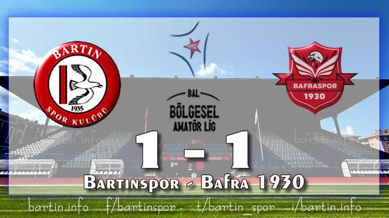 Bölgesel Amatör Lig (BAL) 4. Grup 22. hafta mücadelesinde Bartınspor, sahasında konuk ettiği 1930 Bafra Spor ile 1-1 berabere kaldı.