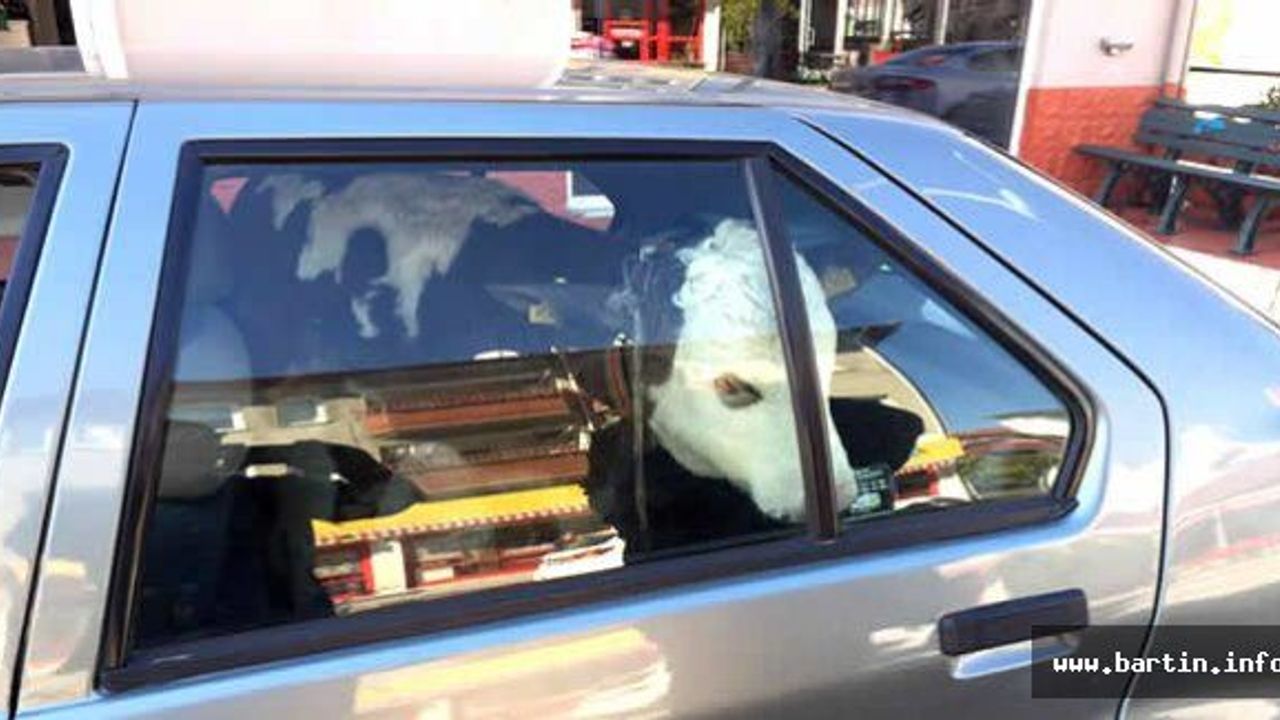 Zonguldak’ın Çaycuma ilçesinde yaşayan 55 yaşındaki Ramazan Burgucu, evinde rahatsızlanan 2 aylık simentel cinsi buzağı 67 ZV 136 plakalı otomobili ile Bartın’a götürdü. Otomobilin arka tarafına bindirdiği buzağıyı Bartın’daki veteriner hekim Tolga Kandıralı'ya götüren Burgucu bu hali vatandaşları şaşırttı.