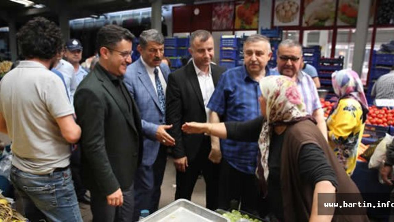 Akın ve Kırşanlı, Bartın Belediyesi Kapalı Pazaryeri’nden başladıkları esnaf ziyaretlerine, Kanlı Irmak Caddesi’nde bulunan Durak Kıraathanesi ve Kırtepe Mahallesi Kocabekir Sokak’ta devam etti. Akın ve Kırşanlı esnaf ziyaretleri esnasında bir taraftan esnaflara işlerinde kolaylık ve bereketli kazanç dileklerini iletirken bir taraftan da vatandaşlarla selamlaşıp hatırlarını sordular.