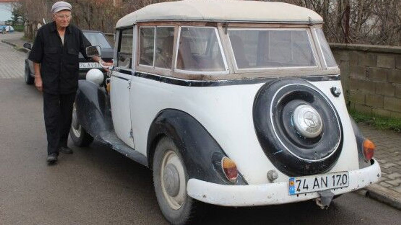 BARTIN'DA 1939 MODEL KLASİK OTOMOBİL, GÖRENLERİN İLGİSİNİ ÇEKİYOR. (BARTIN-İHA)