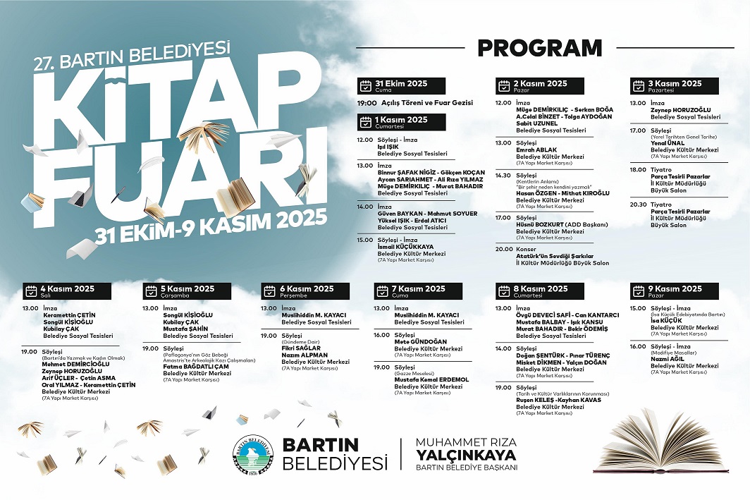 Bartın Belediyesi tarafından bu yıl 27’ncisi düzenlenecek olan Bartın Belediyesi Kitap Fuarının programı belli oldu.