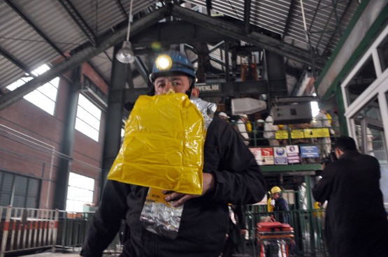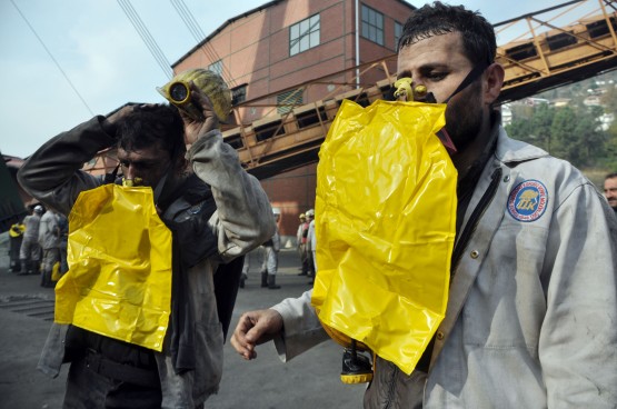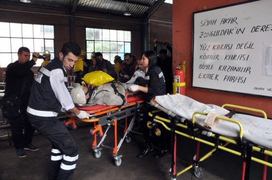 ZONGULDAK’TA 600 MADEN İŞÇİSİNİN KATILDIĞI ‘OCAK TAHLİYE TATBİKATI’ GERÇEĞİNİ ARATMADI. İŞÇİLER KENDİLERİNİ ACİL BİR DURUMDA HAYATTA TUTACAK OKSİJEN FERDİ KURTARICI MASKESİNİ DENEDİ. TATBİKAT SIRASINDA 2 İŞÇİ GERÇEKTEN BAYILINCA KISA SÜRELİ PANİK YAŞANDI. (A. CÜNEYD HAMZAÇEBİ - SERTAÇ ÖZDEMİR/ZONGULDAK-İHA)