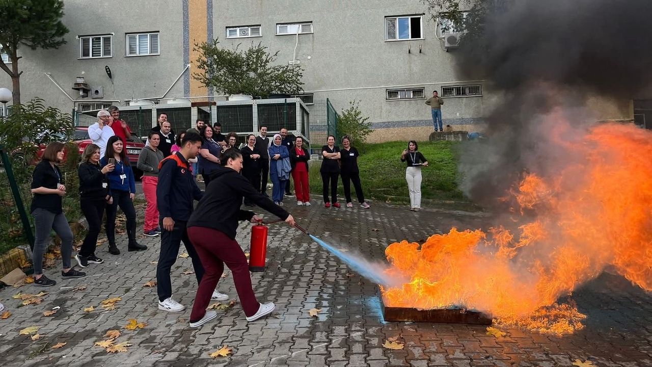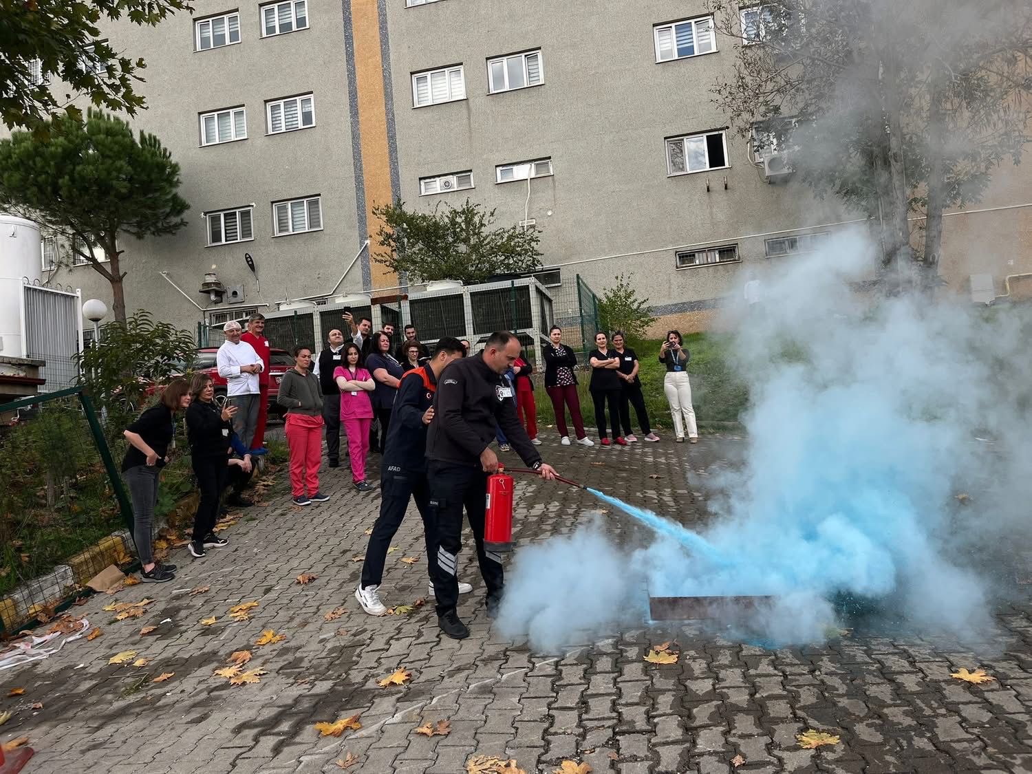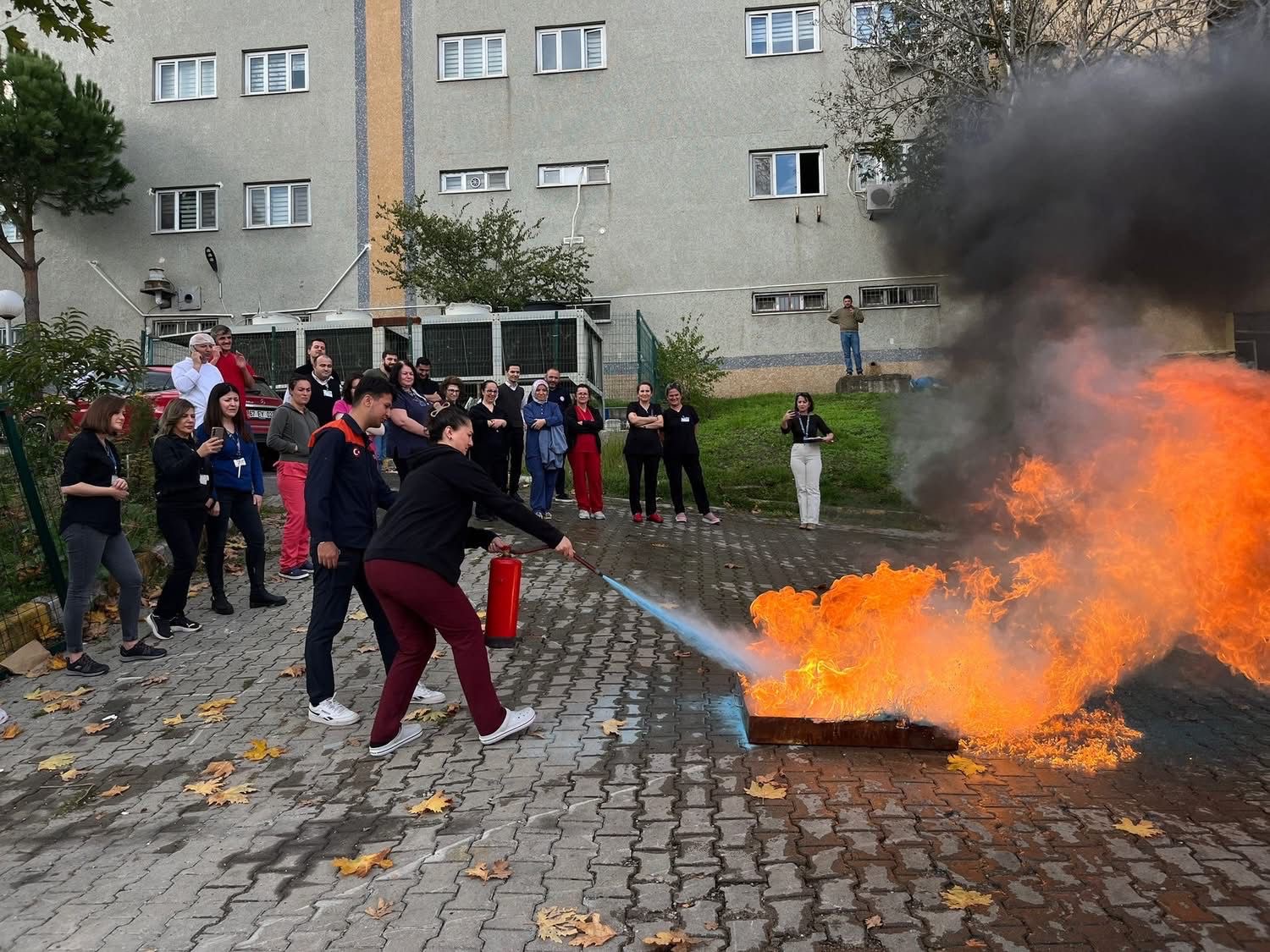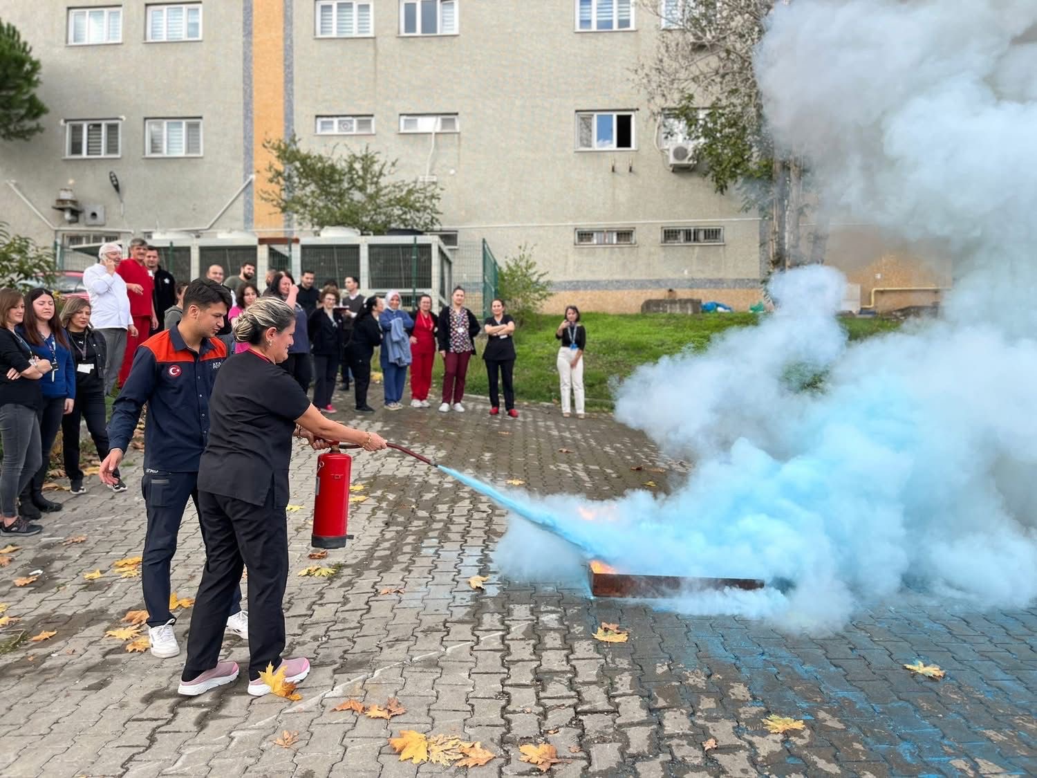 Ardından uygulamalı tatbikat yapılarak, personelin olası yangınlara karşı bilinç ve müdahale becerileri artırıldı.