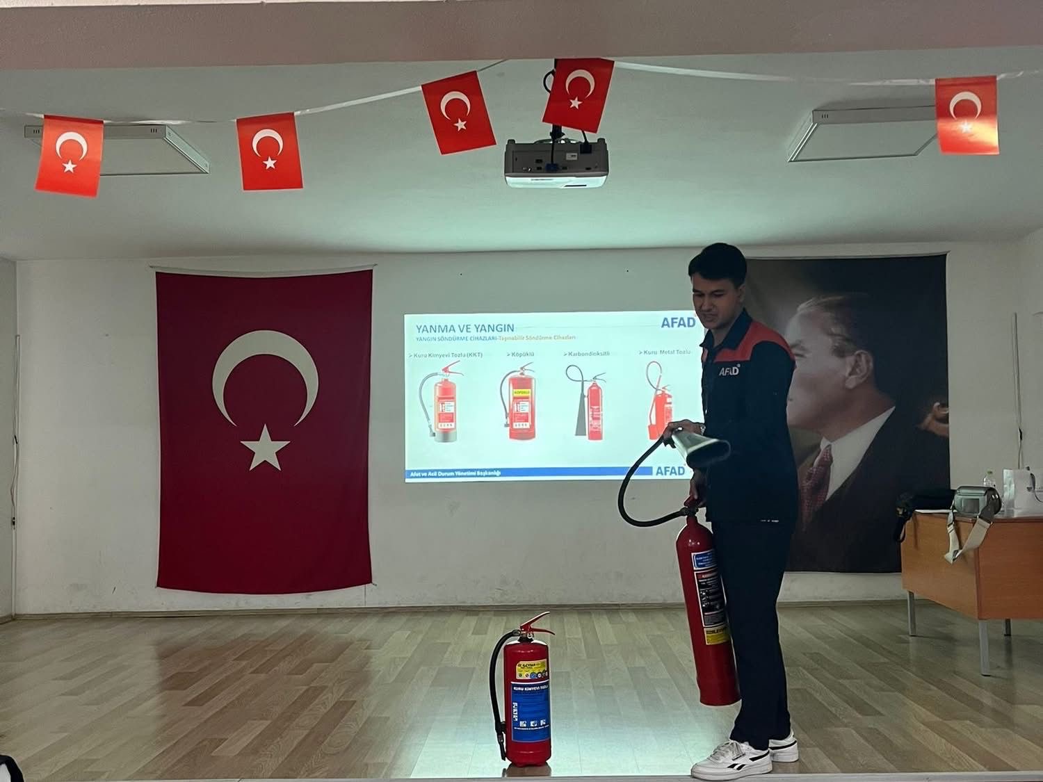 Eğitim kapsamında katılımcılara; yangın çıkış nedenleri, yangın anında doğru davranış biçimleri, acil durum tahliye yöntemleri ve yangın söndürme cihazlarının doğru kullanımı hakkında teorik bilgiler verildi.