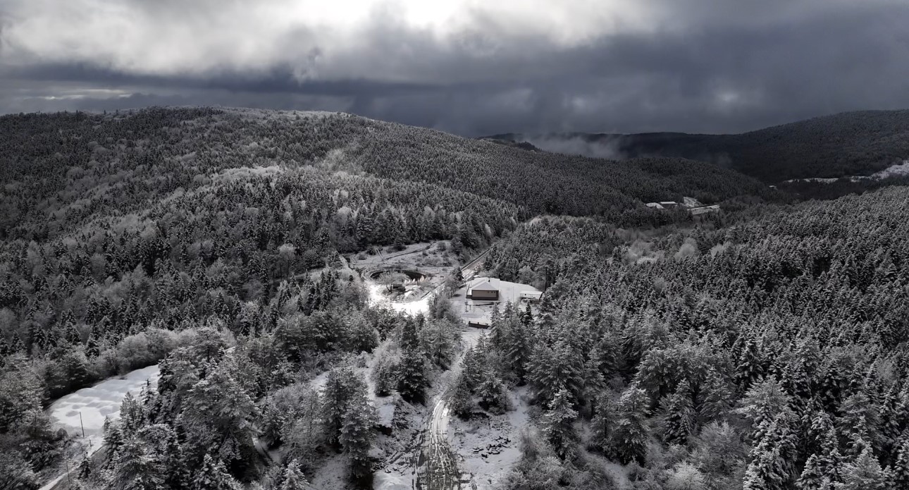Karabük'ün yüksek kesimlerinde etkili olan kar yağışıyla birlikte ormanlık alanlar beyaza bürünürken, ortaya çıkan kartpostallık manzaralar dronla görüntülendi.