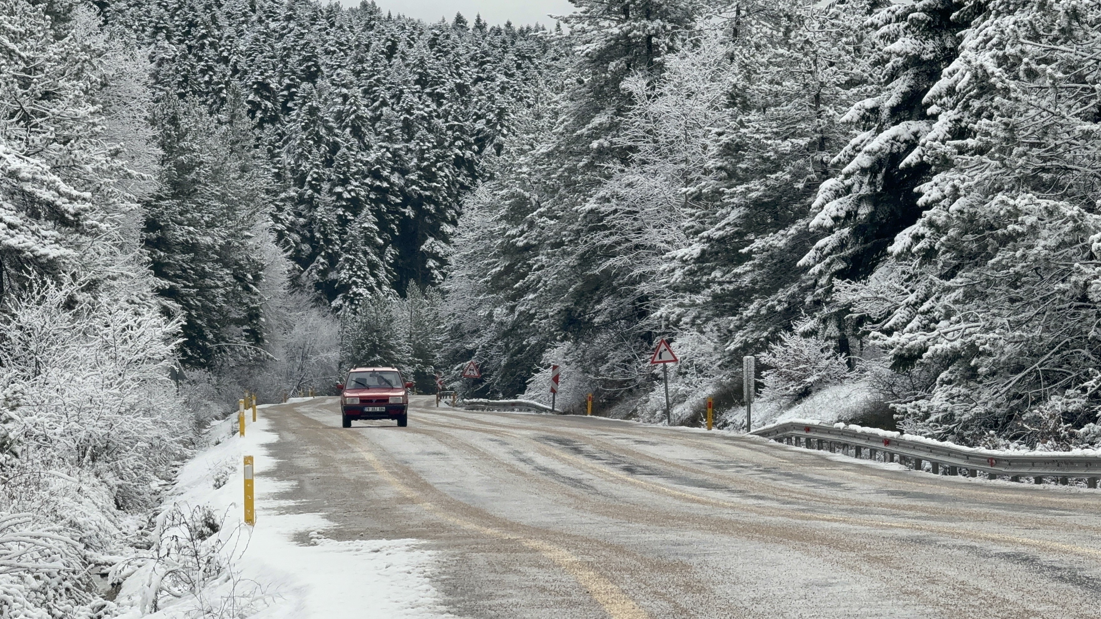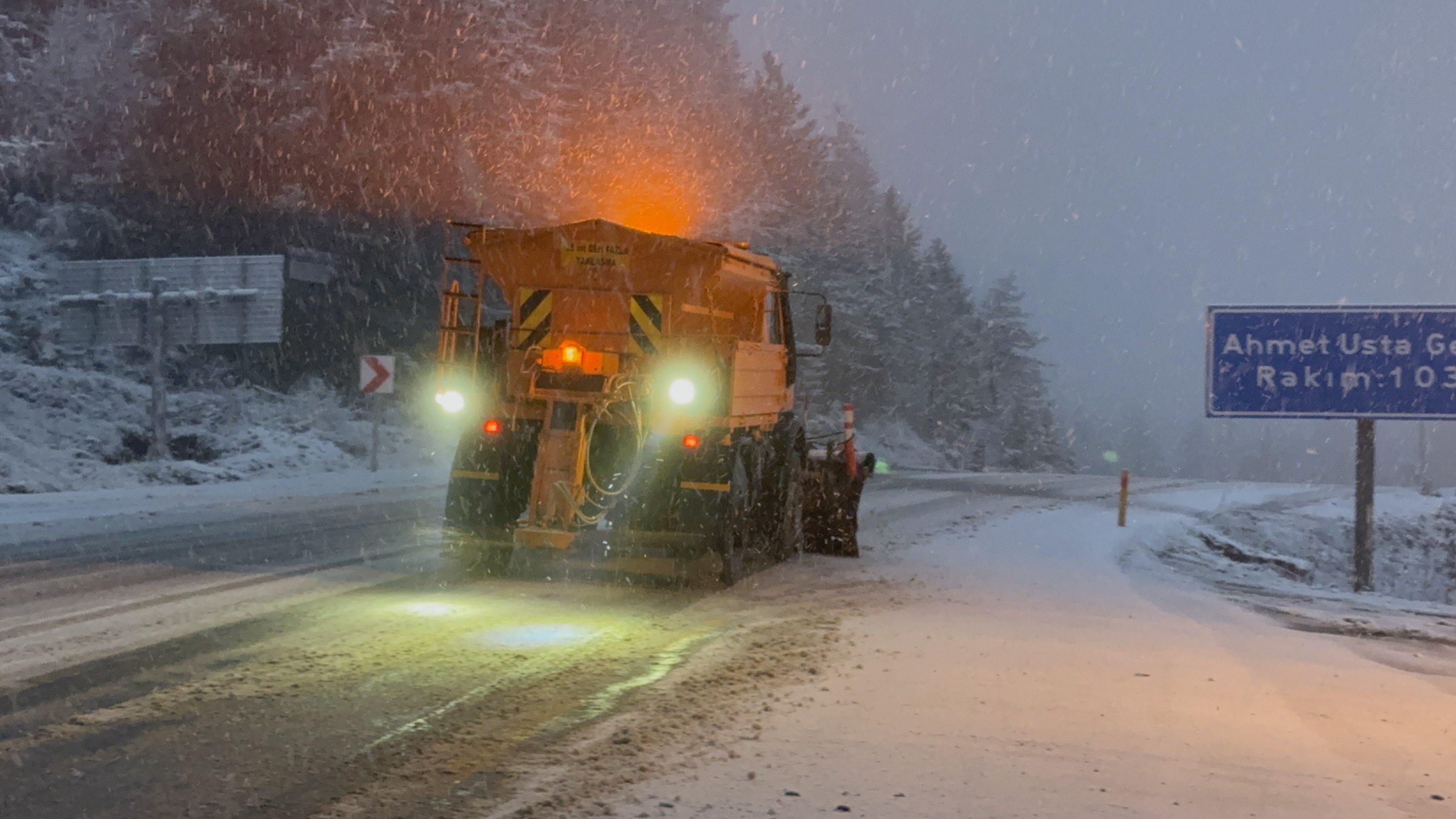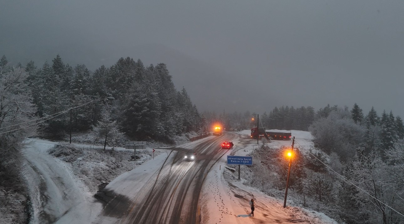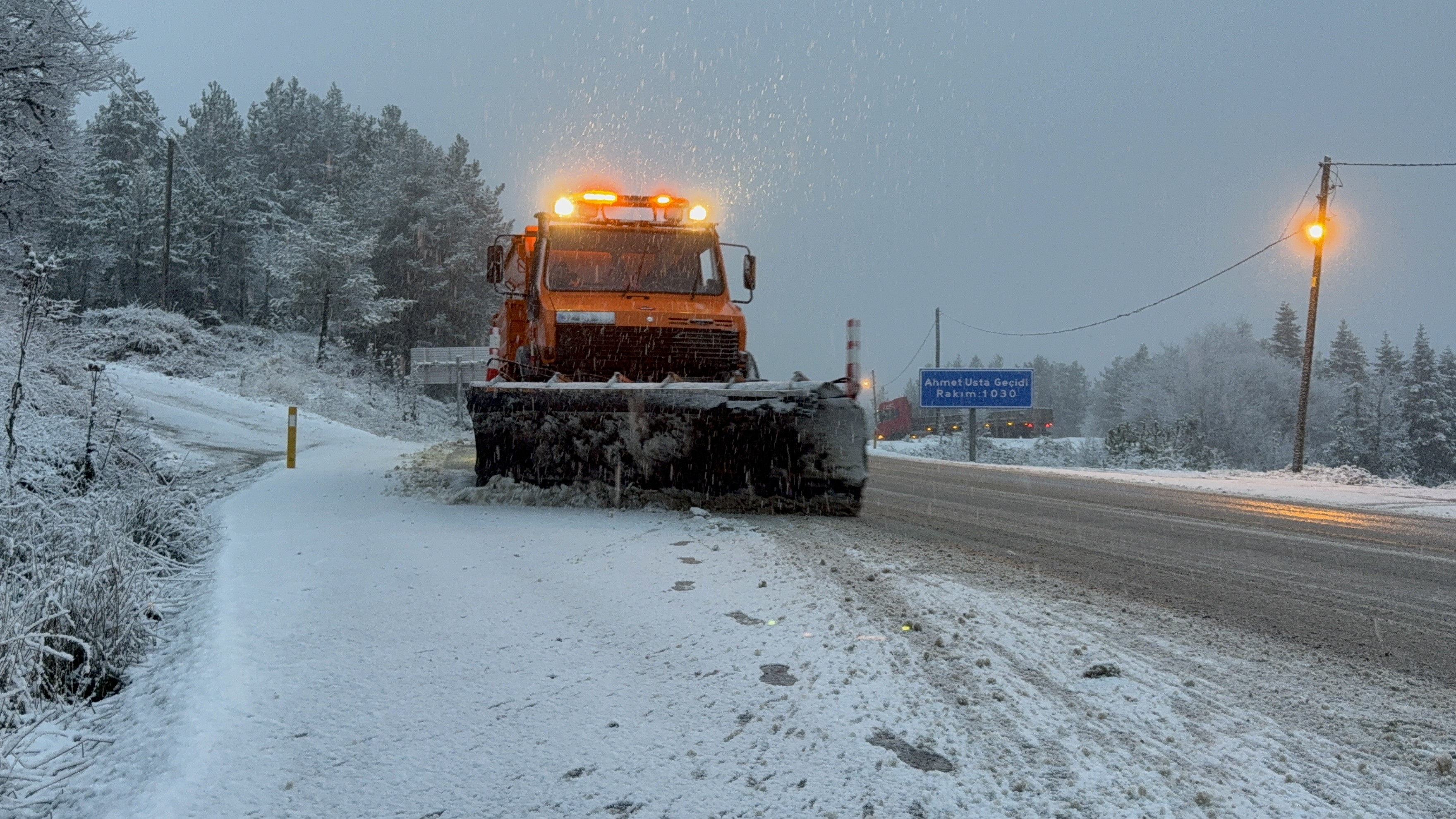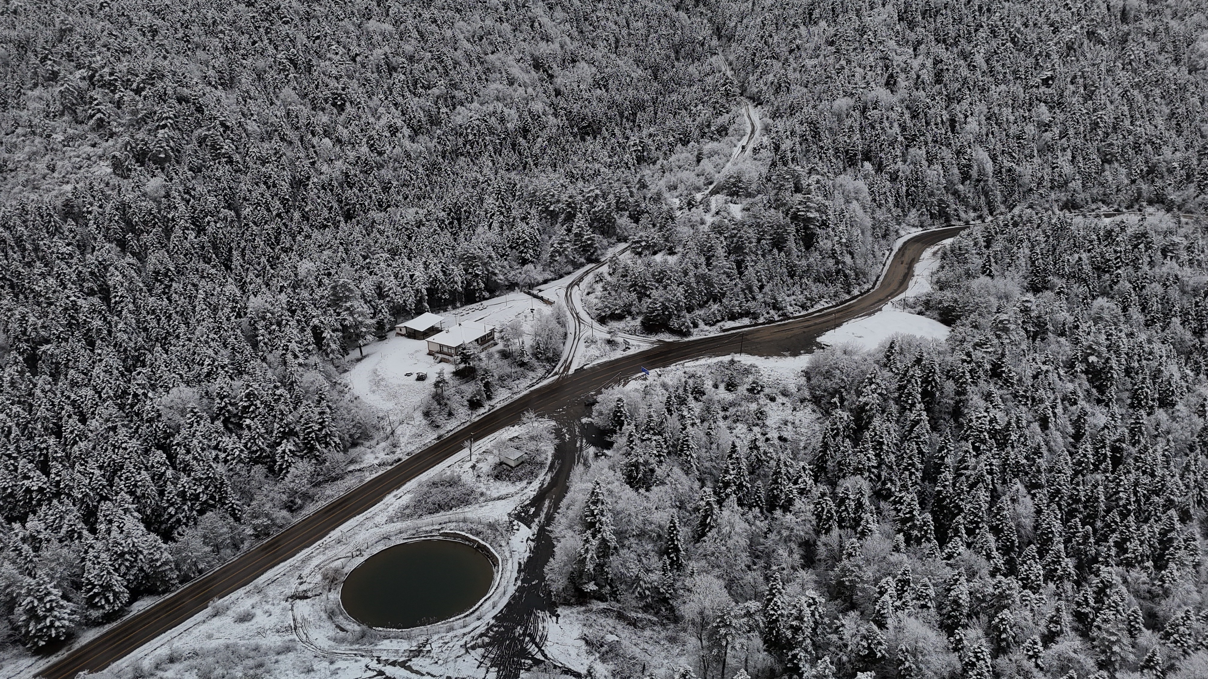 Kar yağışıyla birlikte ormanlık alanlarda kartpostallık görüntüler oluştu. Kara yolları ekipleri, ulaşımda aksama yaşanmaması için kar küreme ve tuzlama çalışması gerçekleştiriyor.