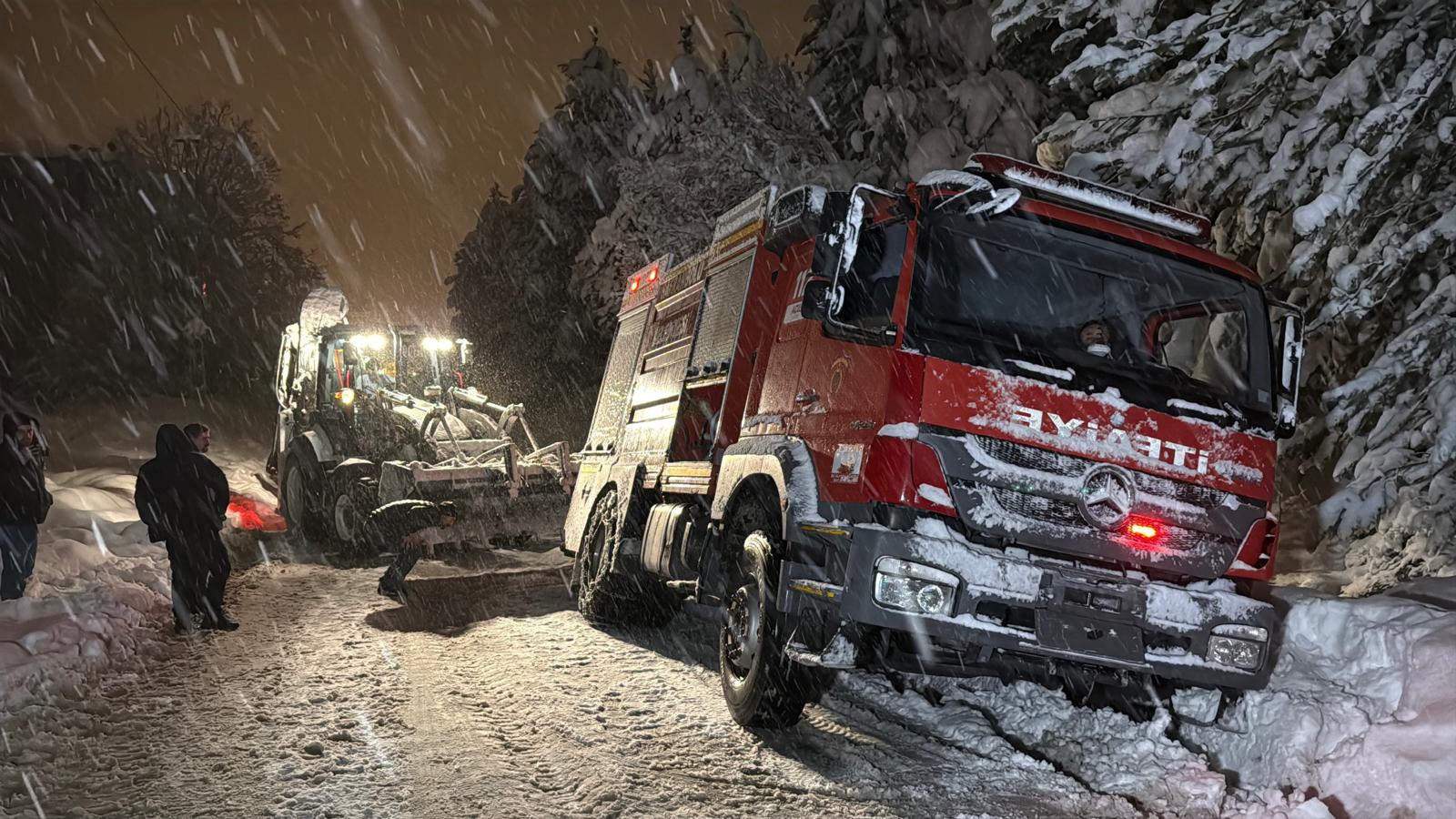 Yoldan çıkan itfaiye aracı kepçe yardımıyla bulunduğu yerden kurtarıldı.