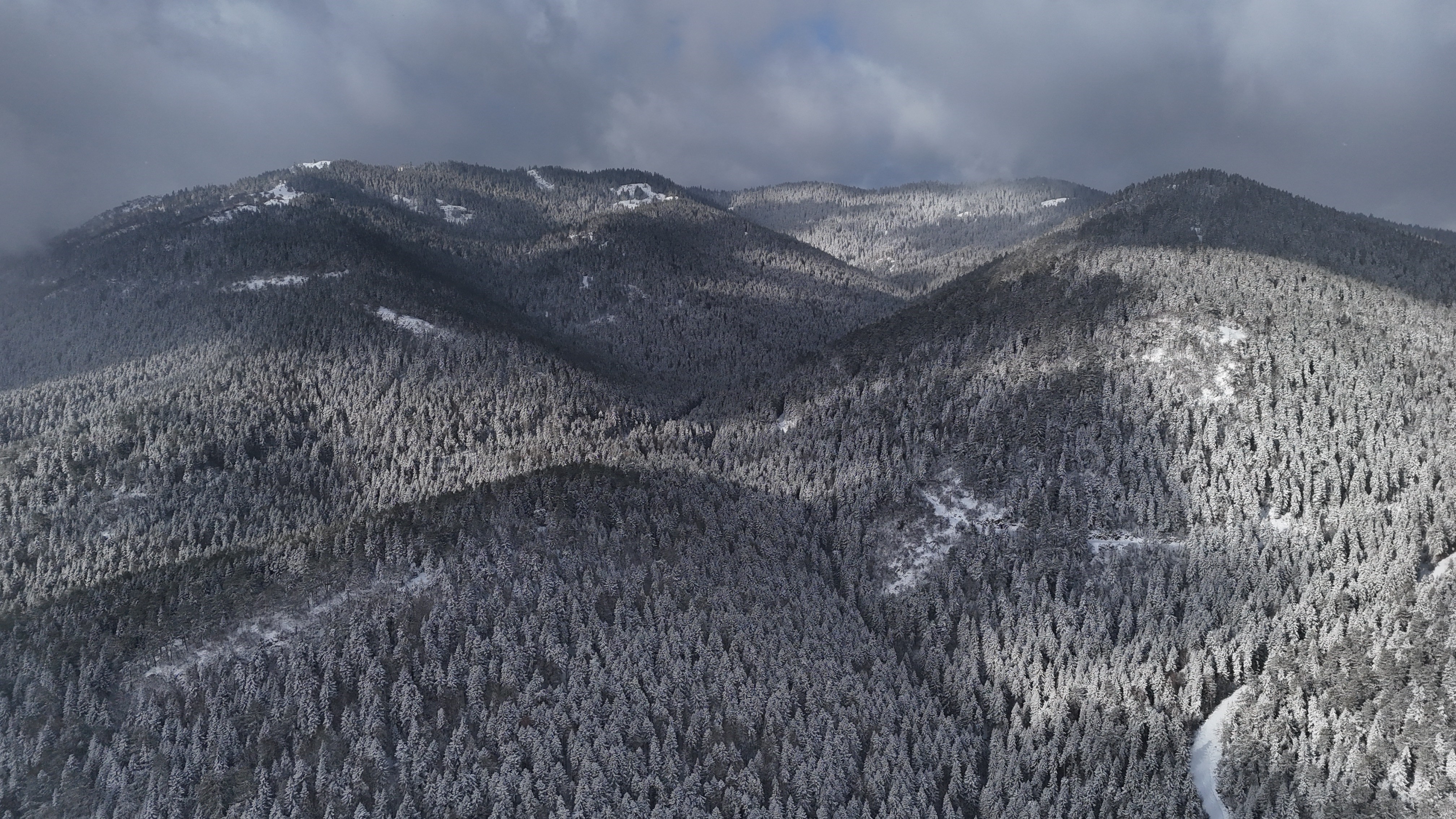 Bölgedeki ormanlık alanlar ve karla kaplanan yol güzergâhı dron ile havadan görüntülenirken, sürücülere zincir ve kış lastiği uyarısı yapıldı. Kar yağışının yüksek kesimlerde aralıklarla devam etmesi bekleniyor.