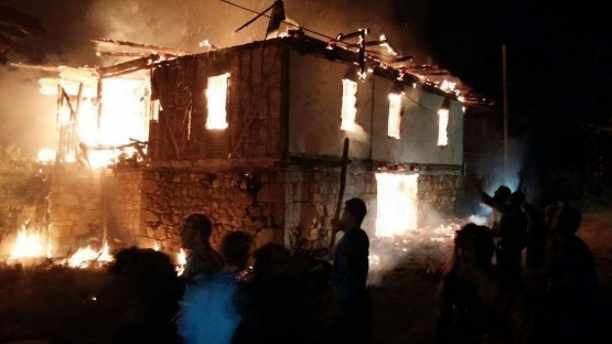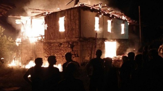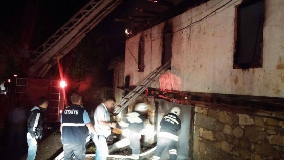 BARTIN'DA 2 KATLI AHSAP EVDE CIKAN YANGINDA ALT KATTAKI AHIRDA BULUNAN BUYUKBAS HAYVANLAR TELEF OLDU. FOTO-AYHAN ACAR-BARTIN-DHA