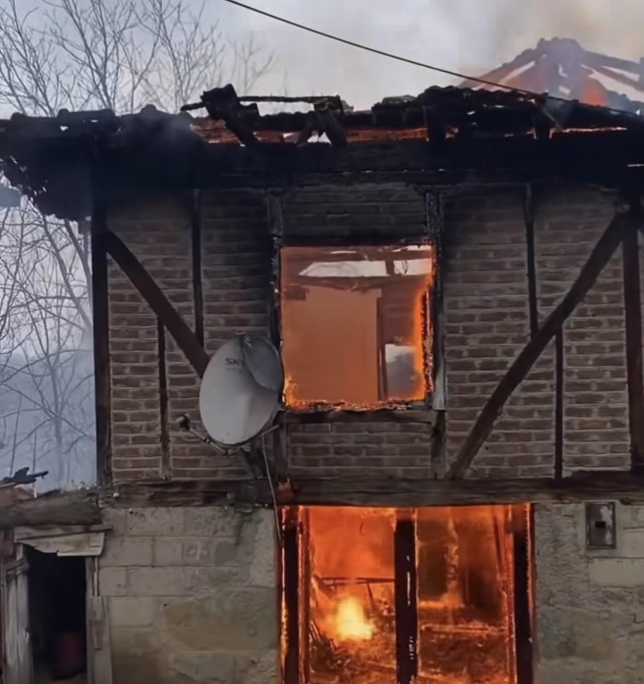 5 kişilik Dağlı ailesi evi boşaltırken, ihbar üzerine köye sağlık, jandarma ve itfaiye ile Orman İşletme Müdürlüğü’ne bağlı arazözler sevk edildi,