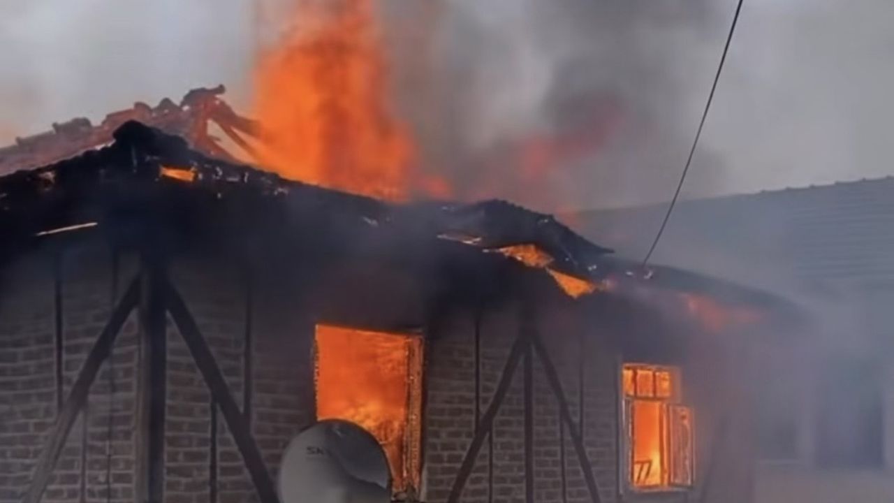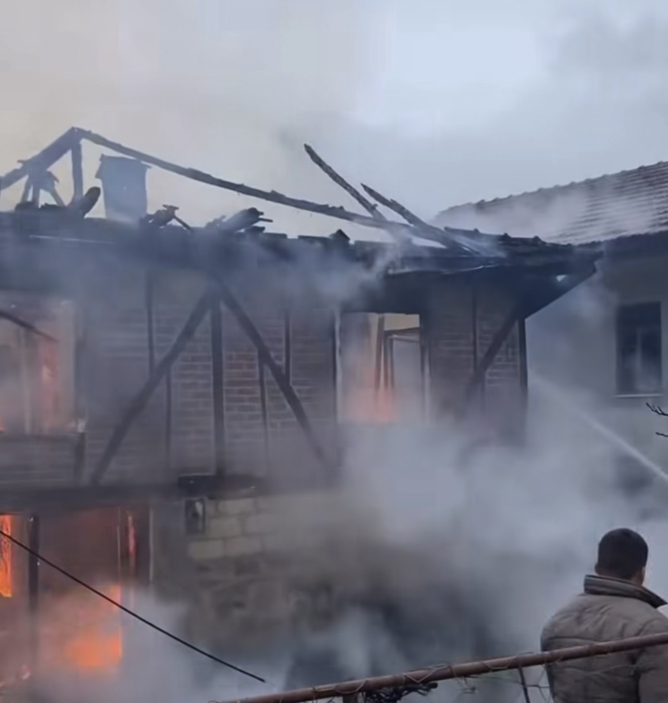 Alevler kısa sürede evi sararken, yangına ilk müdahaleyi köylüler hortumla su sıkarak yaptı.