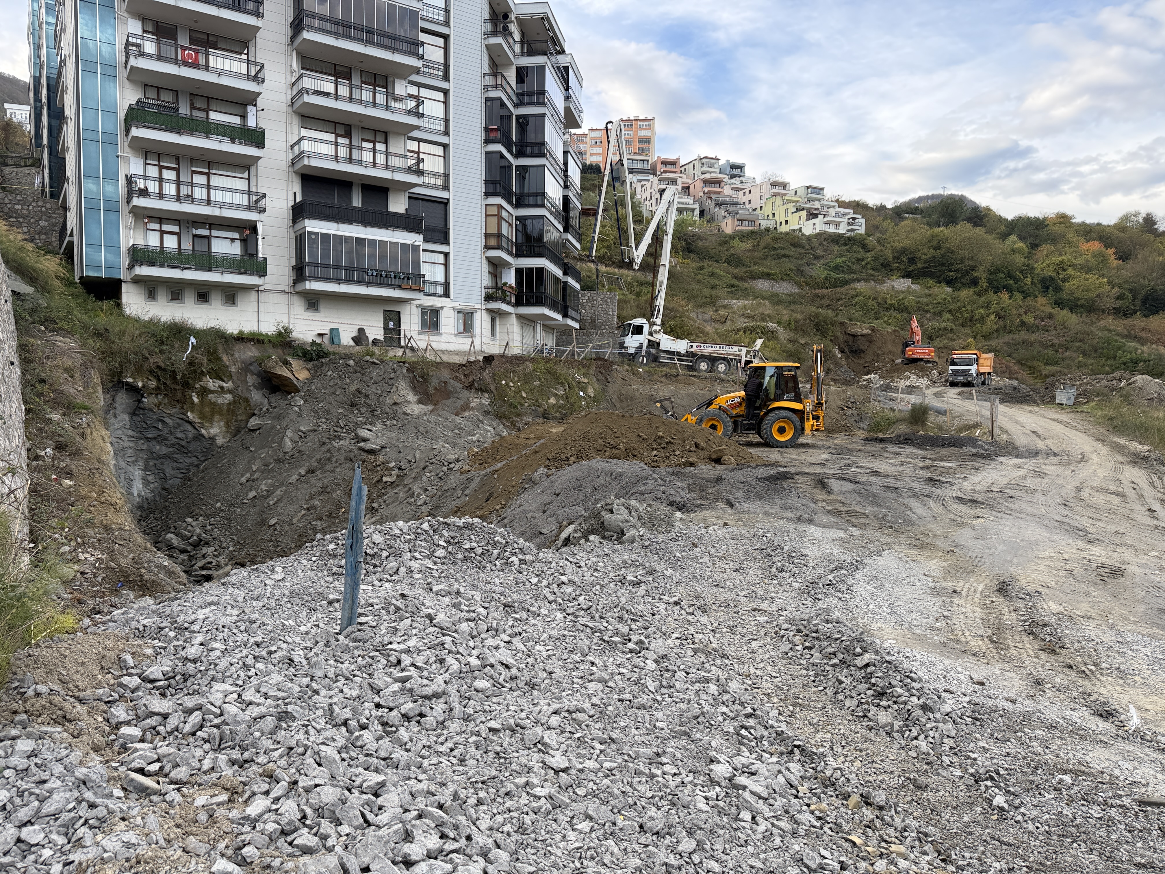 BARTIN'ın Amasra ilçesinde inşaat kazısı sırasında toprak kayması sonucu çöken alan toprakla dolduruluyor. 10 gün sürmesi beklenen çalışmaların ardından evlerinden tahliye edilenler, geri dönebilecek.
