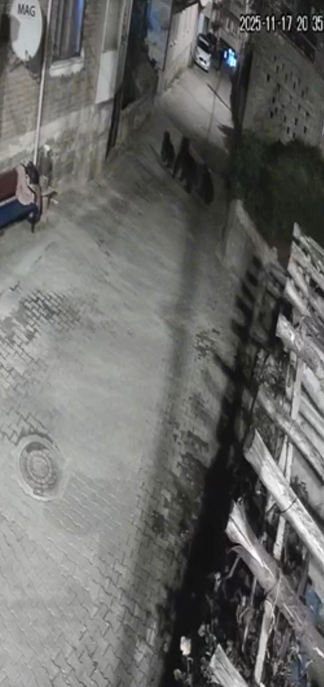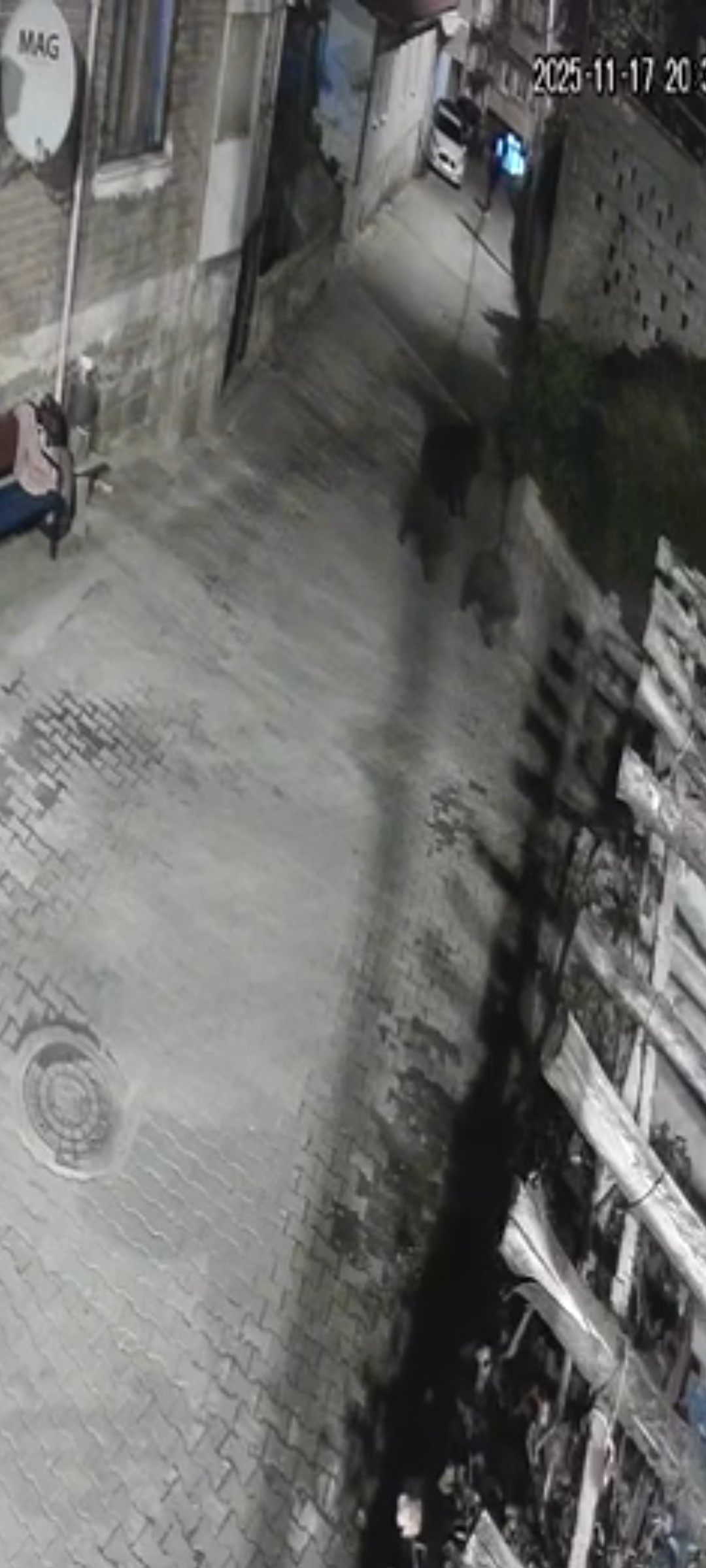 Amasra ilçesi Ahatlar köyüne inen ayıların görüntüsü, köyün girişinde bulunan güvenlik kameralarına yansıdı. Ormanlık alandan yerleşim alanına inen anne ayı ve 2 yavrusu yoldan geçen köy sakinini fark etmelerinin ardından ormanlık alana doğru ilerleyerek kısa sürede gözden kayboldu.