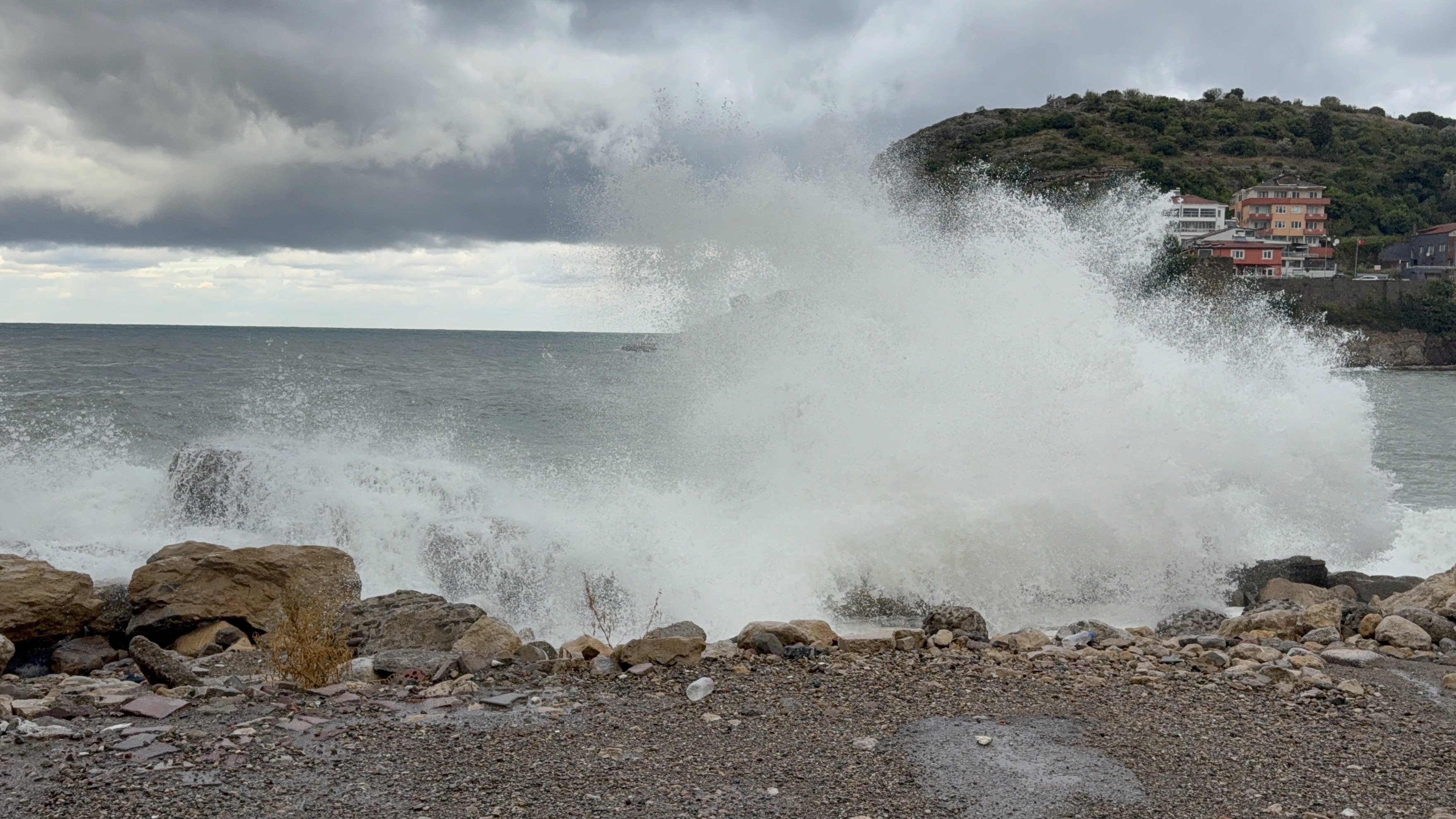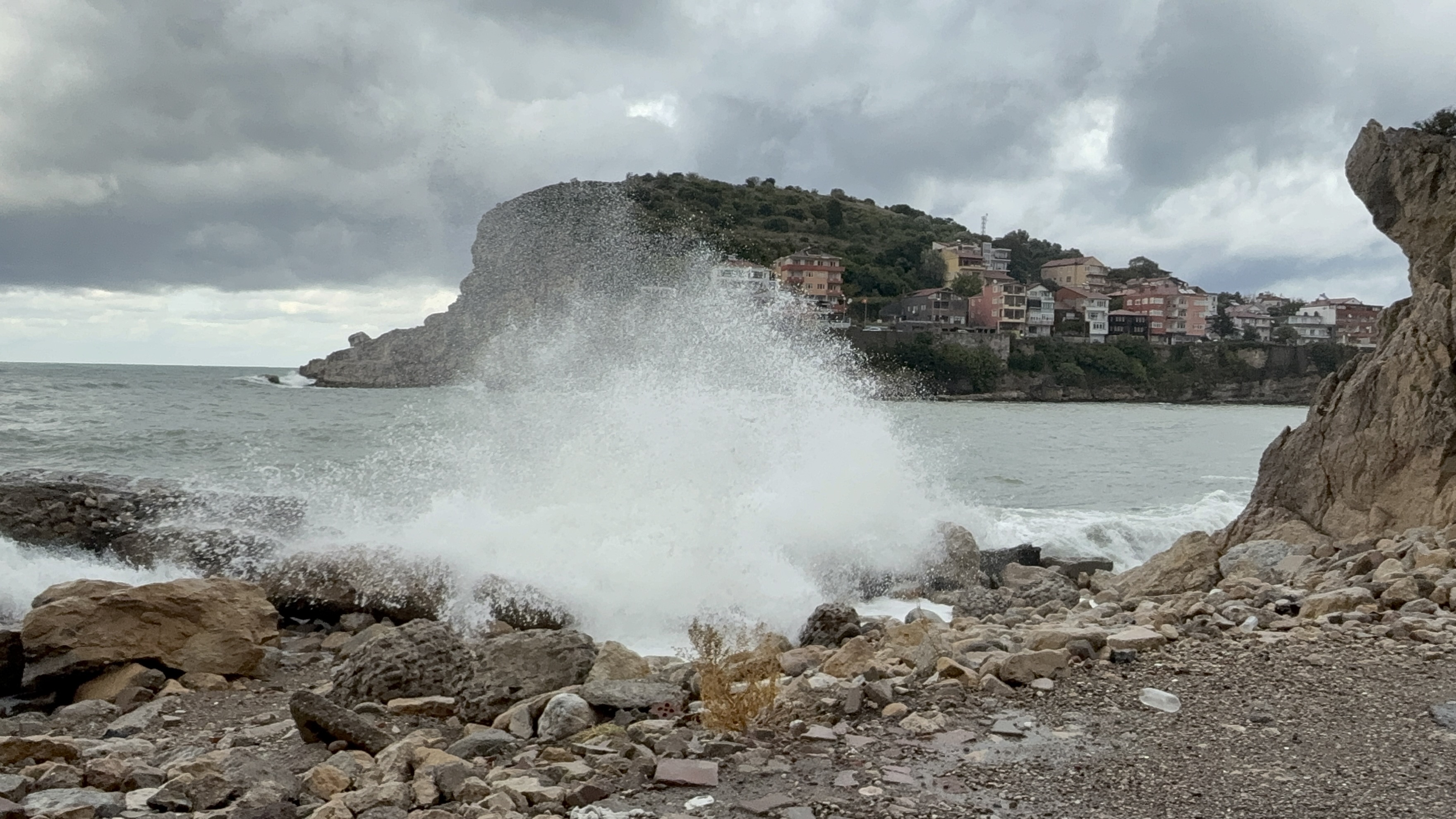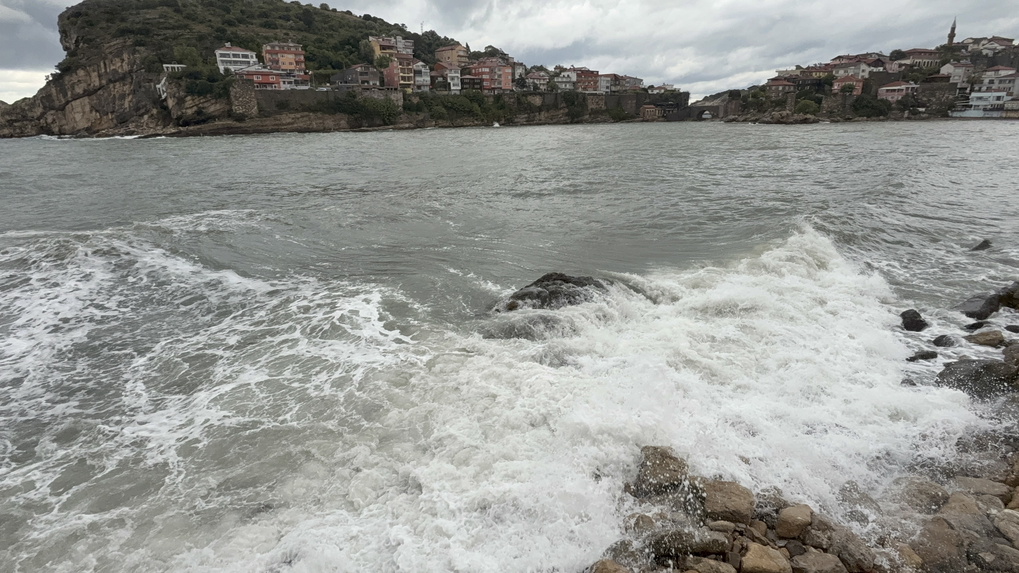 Bartın'ın Amasra ilçesinde öğlen saatlerinden itibaren etkili olan şiddetli rüzgar ile dev dalgalar oluştu. Gün boyu kayalara çarpan dalgaların yüksekliği 4 metreye ulaşırken, gece yarısı ise şiddeti artan fırtına ile birlikte Karadeniz adeta coştu.