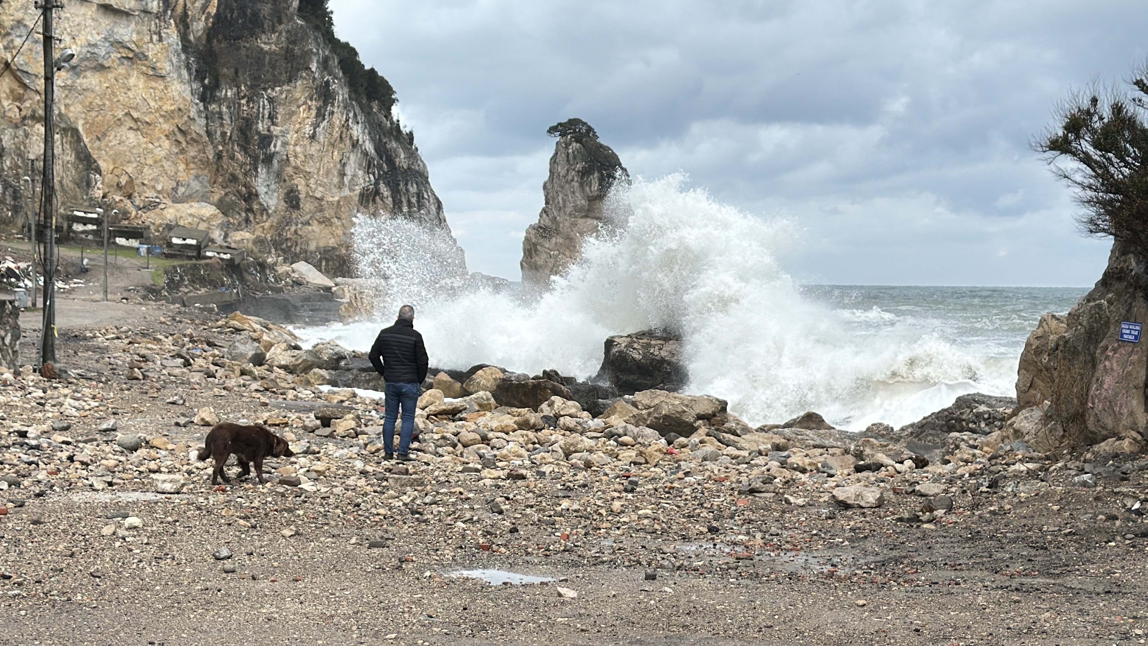 . Amasra Küçük Limanı'nda duvarlara çarpan dalgaların boyu 3 metreyi buldu. Çevredekiler limana gelerek, cep telefonları ile dalgaları görüntüledi.