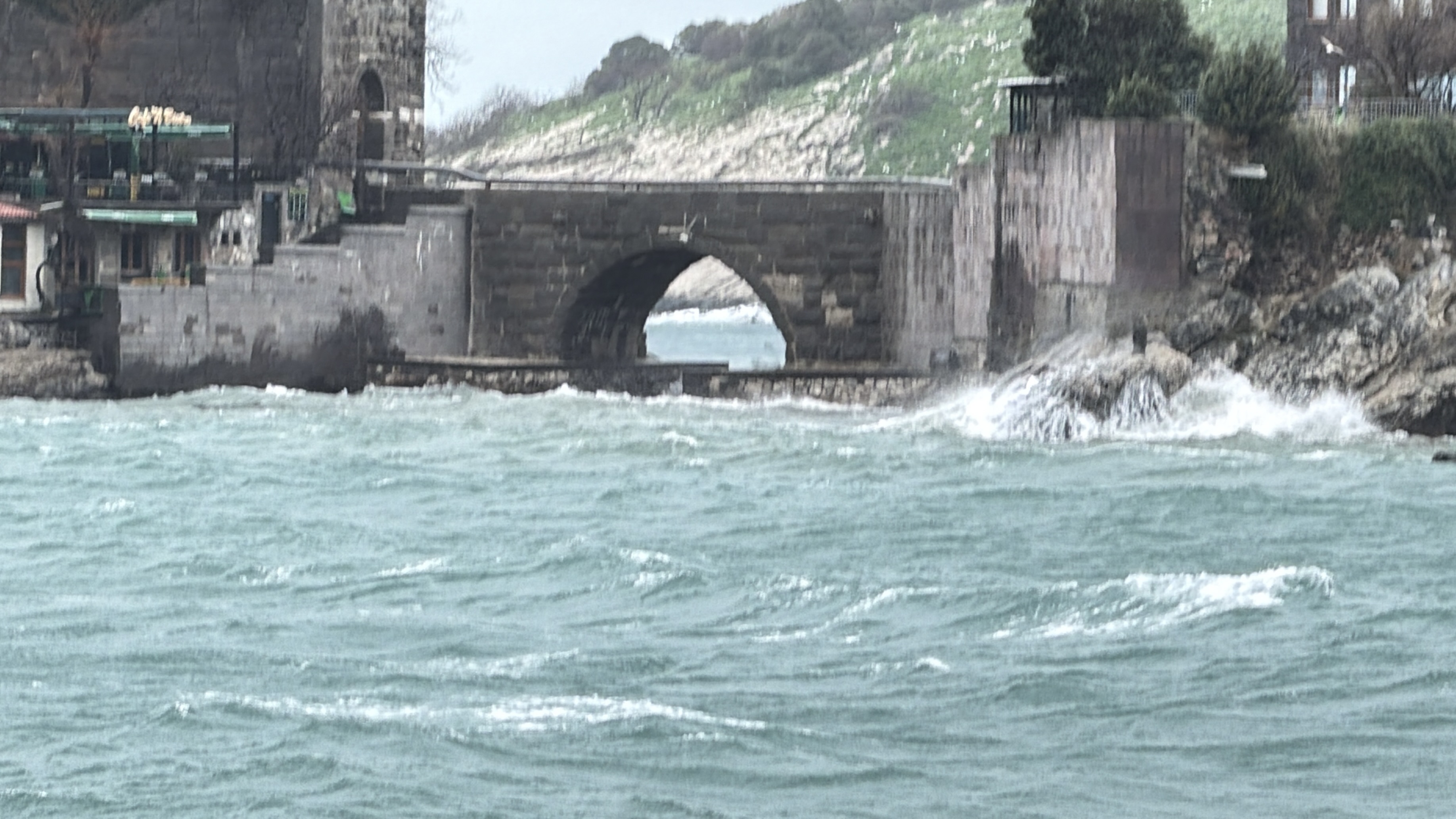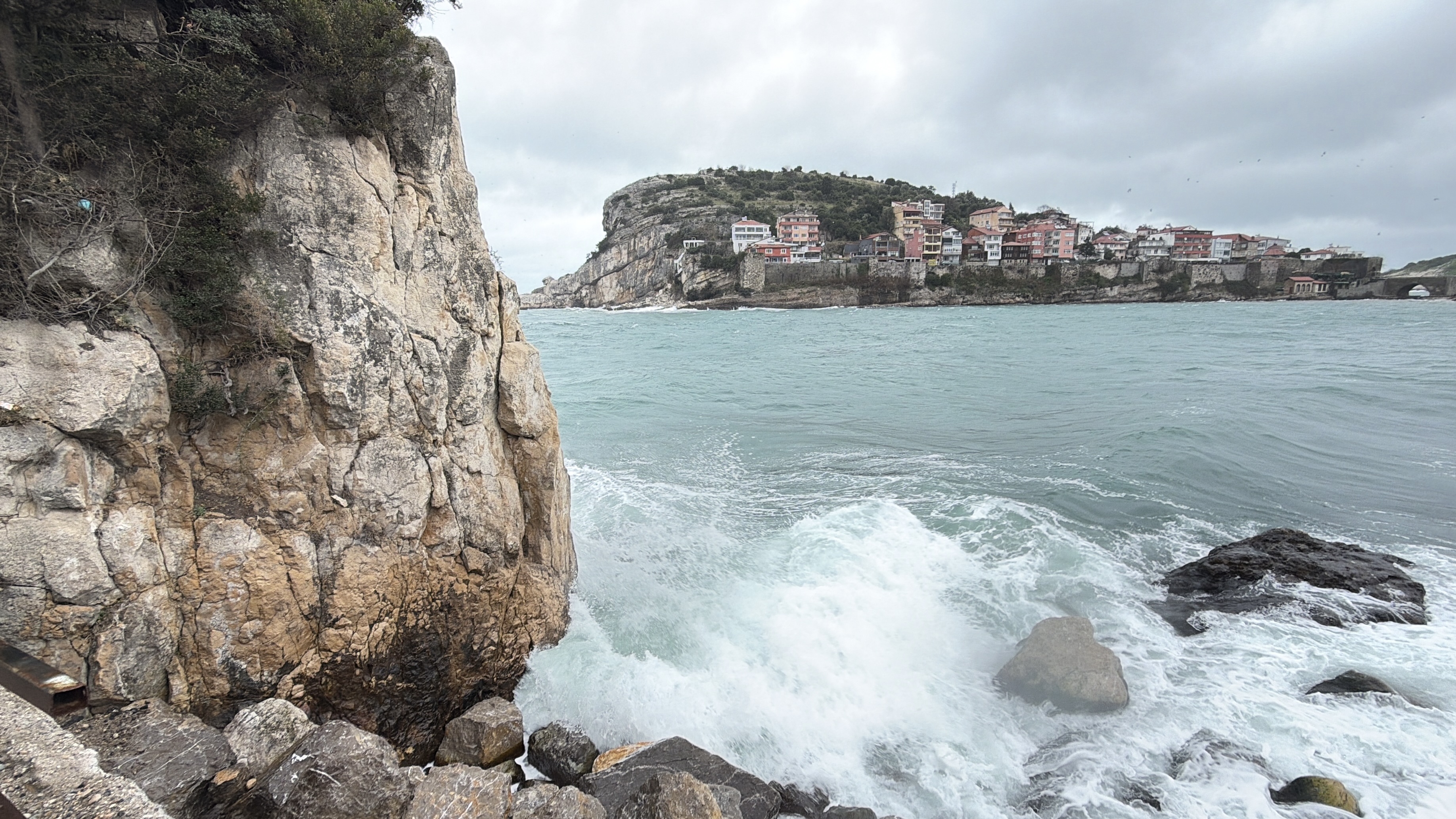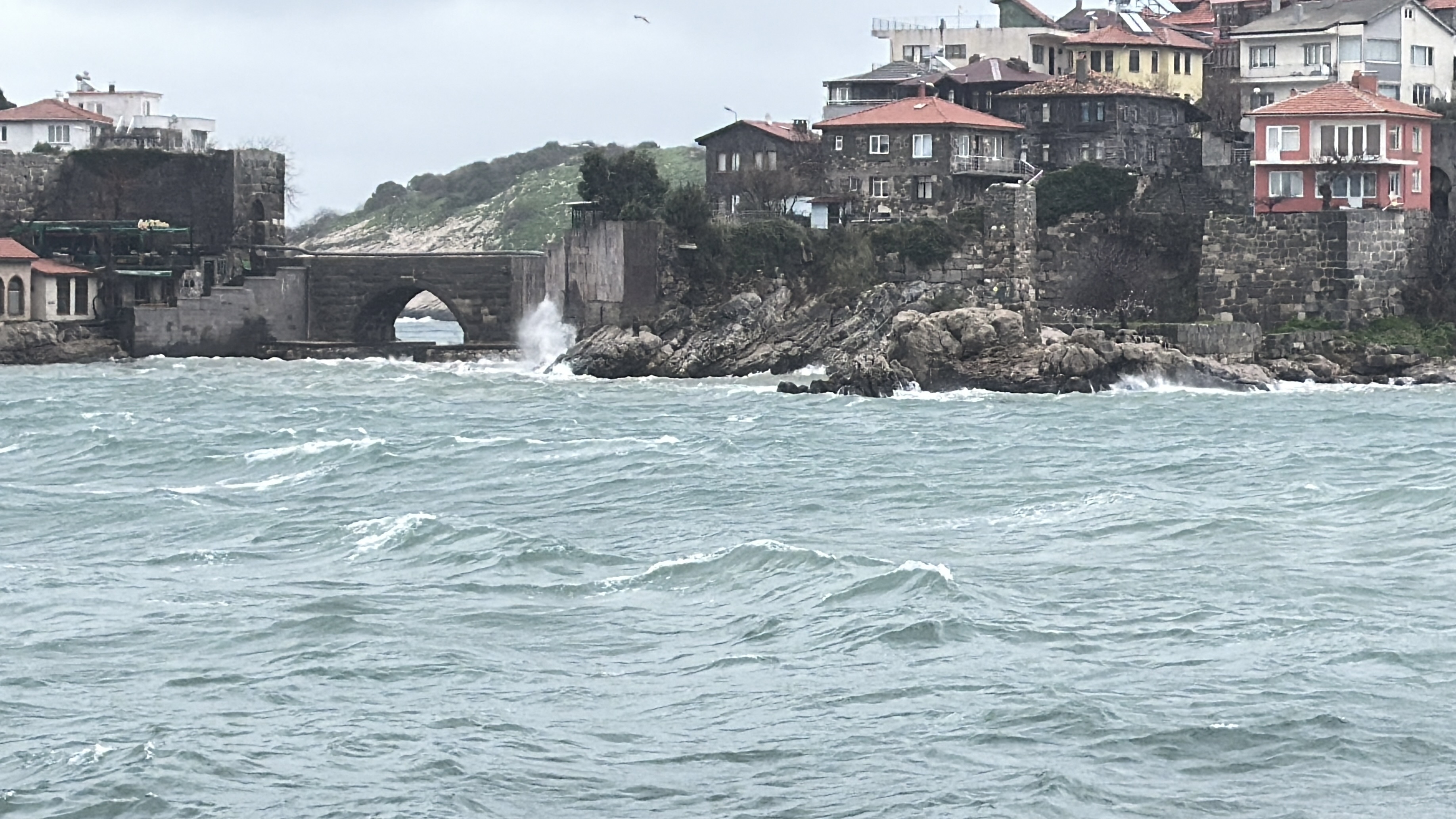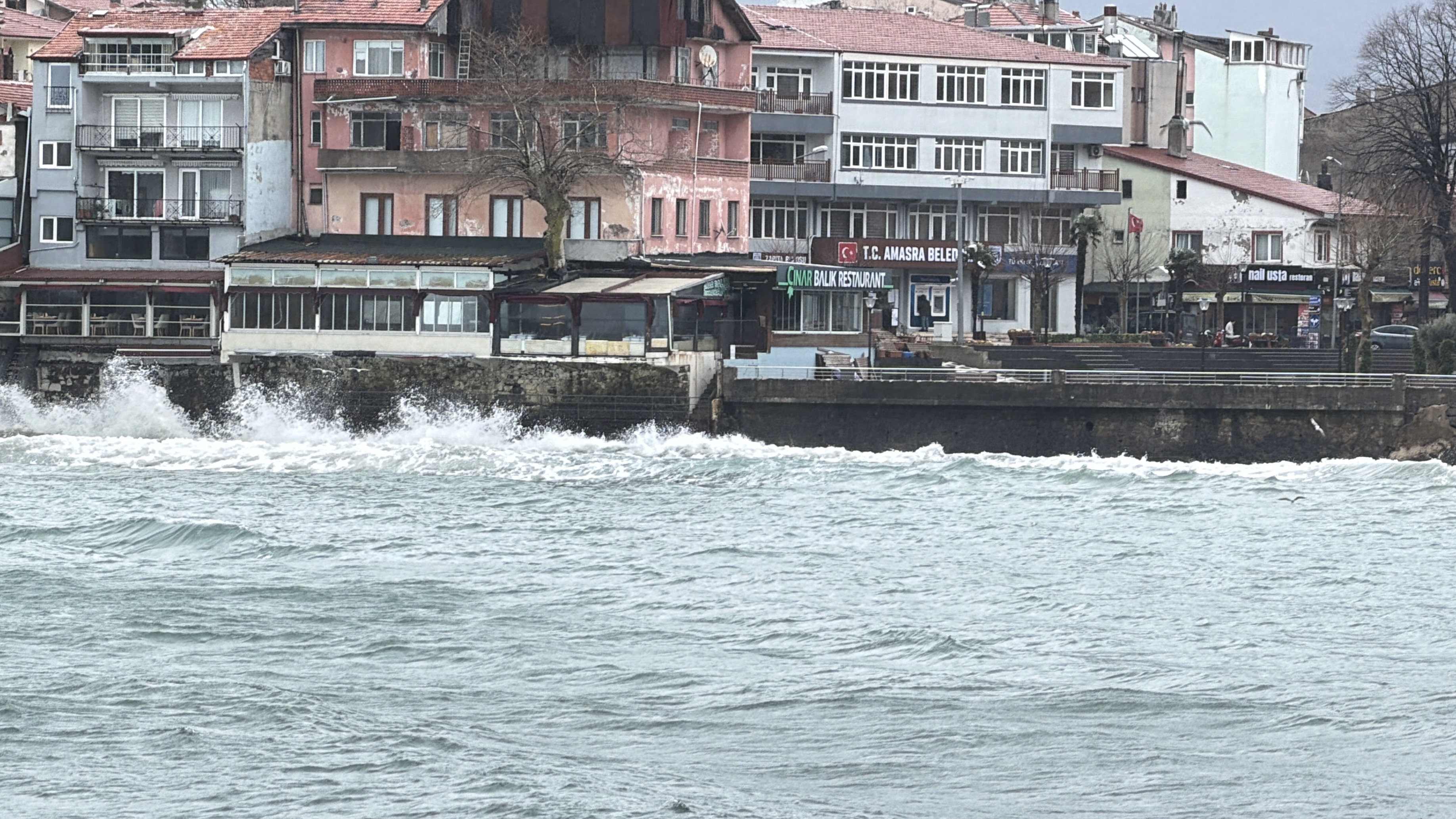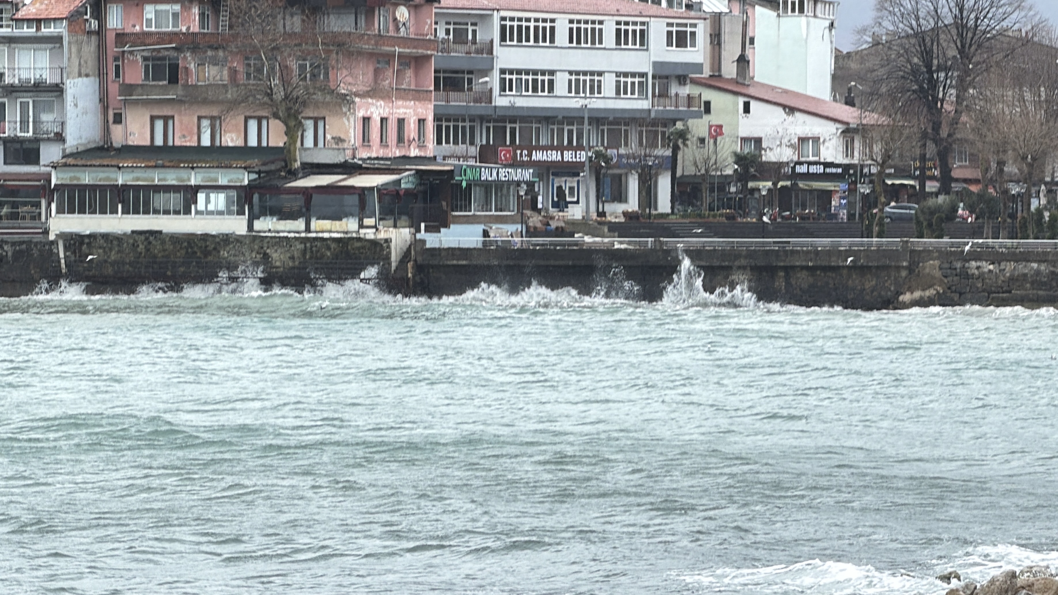 Rüzgar nedeniyle denizde dalgalar oluştu. Amasra Küçük Liman'da restoranların beton duvarlarına çarpan dalgaların boyu 2 metreyi buldu. Vatandaşlar, limana gelip cep telefonlarıyla dalgaları görüntüledi.
