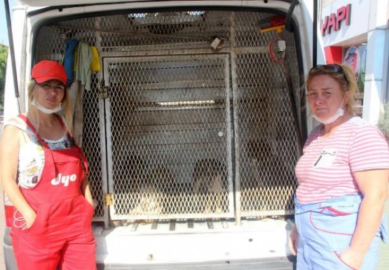 BARTIN BELEDIYESI'NE AIT BAKIMEVINDE ACLIKTEN BITKIN DUSEN KOPEKLER, HAYVAN KORUMA VE KURTARMA DERNEGI BASKANI GIZEM ARKAN (SAGDA) VE YARDIMCISI DERYA KOC (SOLDA) TARAFINDAN KLINIGE GOTURULDU. FOTO-BARTIN-DHA