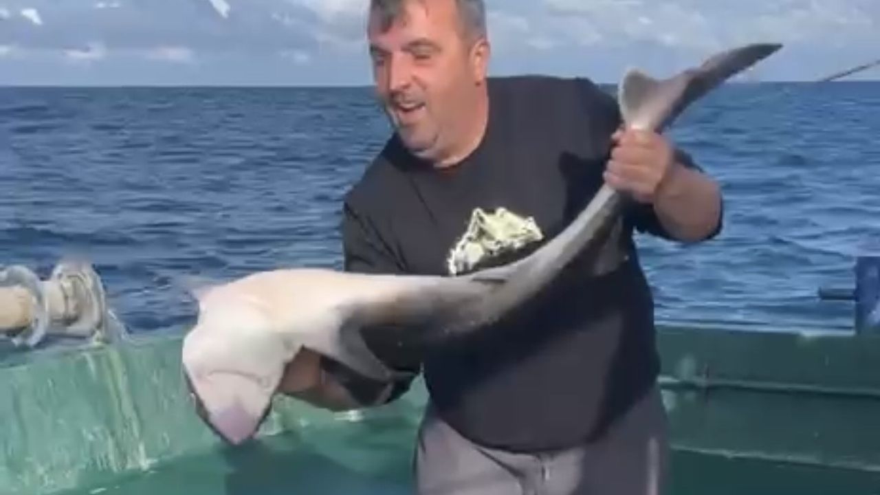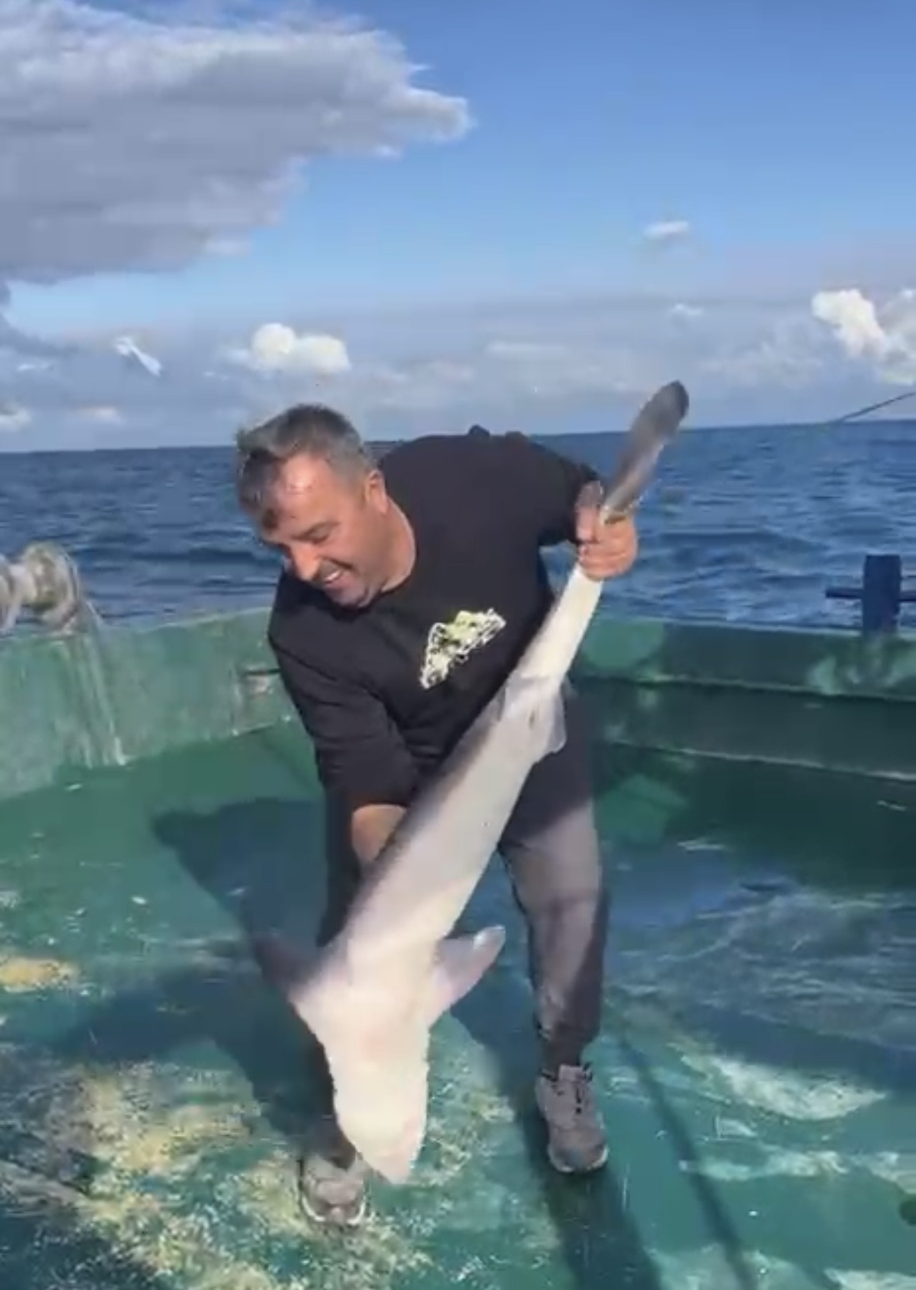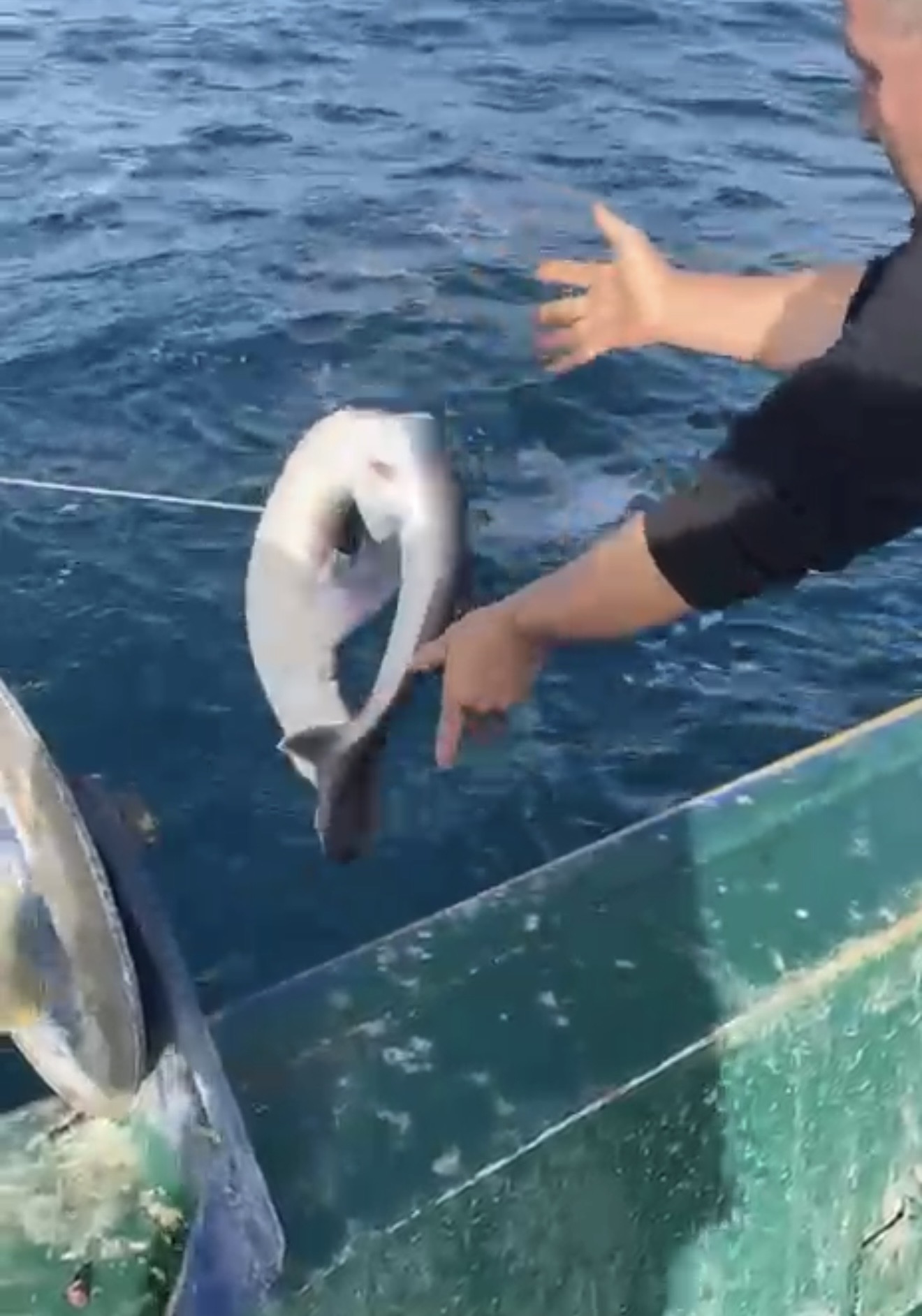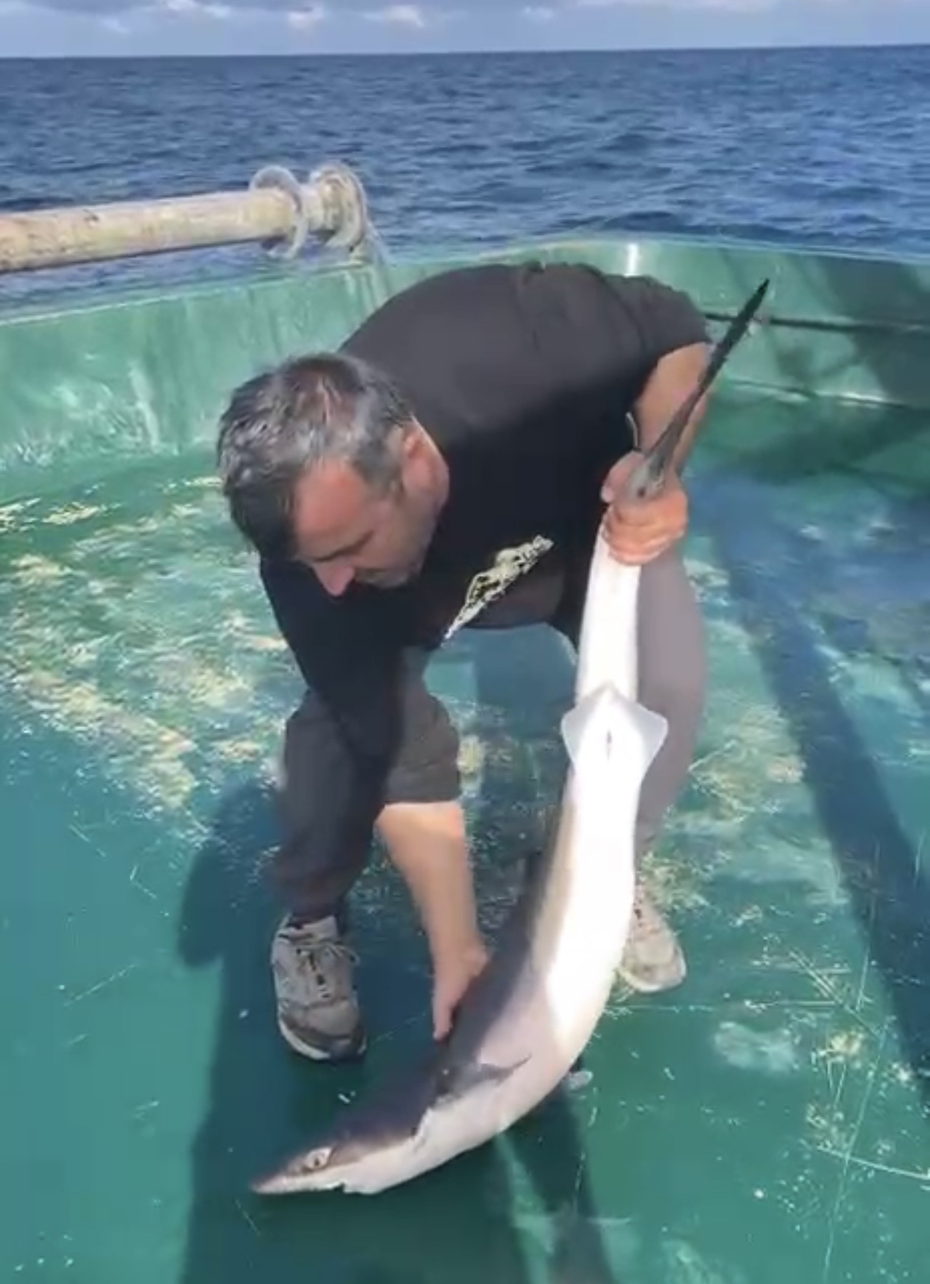 BARTIN’ın Kurucaşile ilçesi açıklarında balıkçıların ağına camgöz türü köpek balığı takıldı. Köpek balığı, denize bırakıldı.
