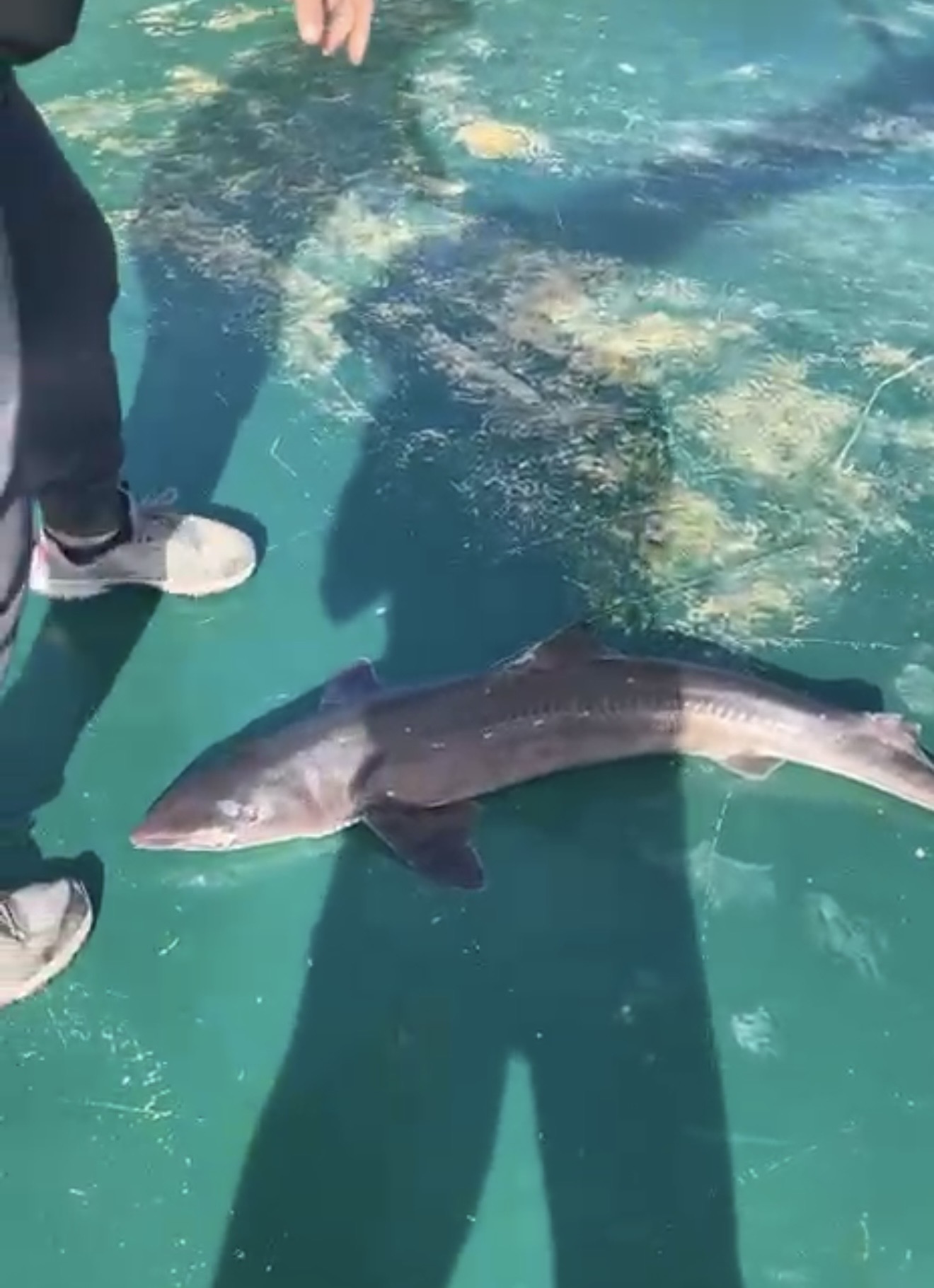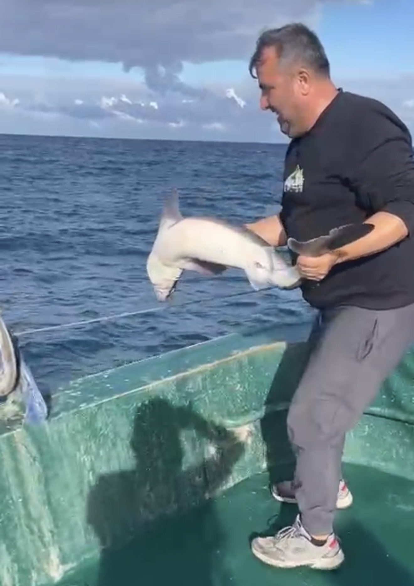 Kurucaşile’den avlanmak için 'Kayalar 2' isimli balıkçı teknesiyle denize açılan balıkçılar, dün akşam saatlerinde ağı çektiğinde içinde yaklaşık 1,5 metre uzunluğunda camgöz cinsi köpek balığını fark etti. Tekne sahibi Kenan Kaya, güçlükle tuttuğu köpek balığını denize bıraktı.