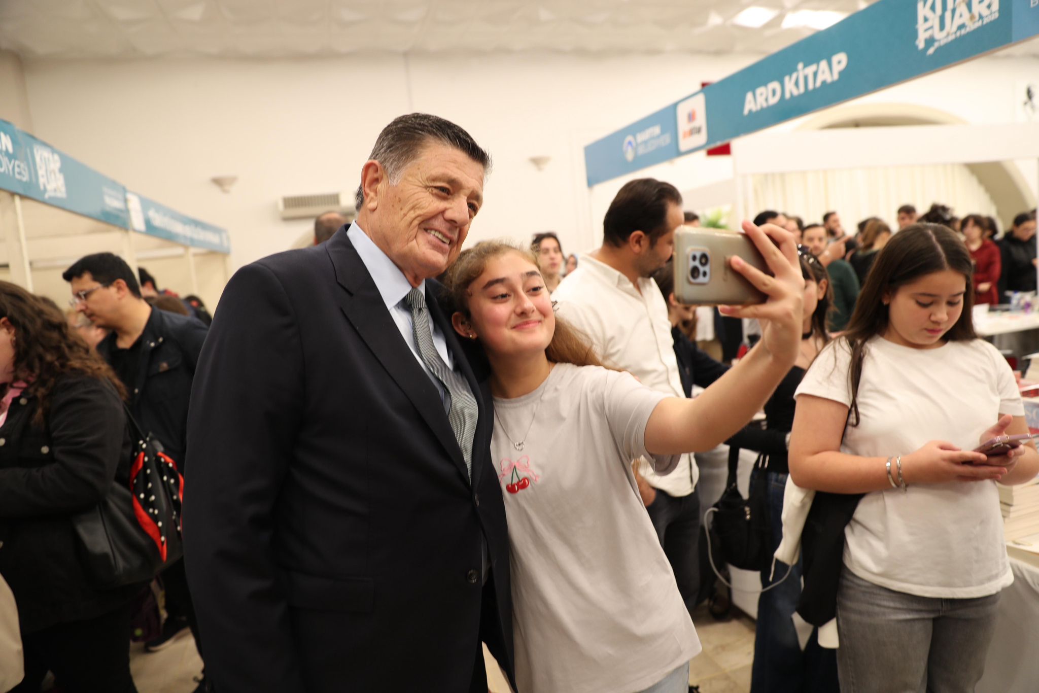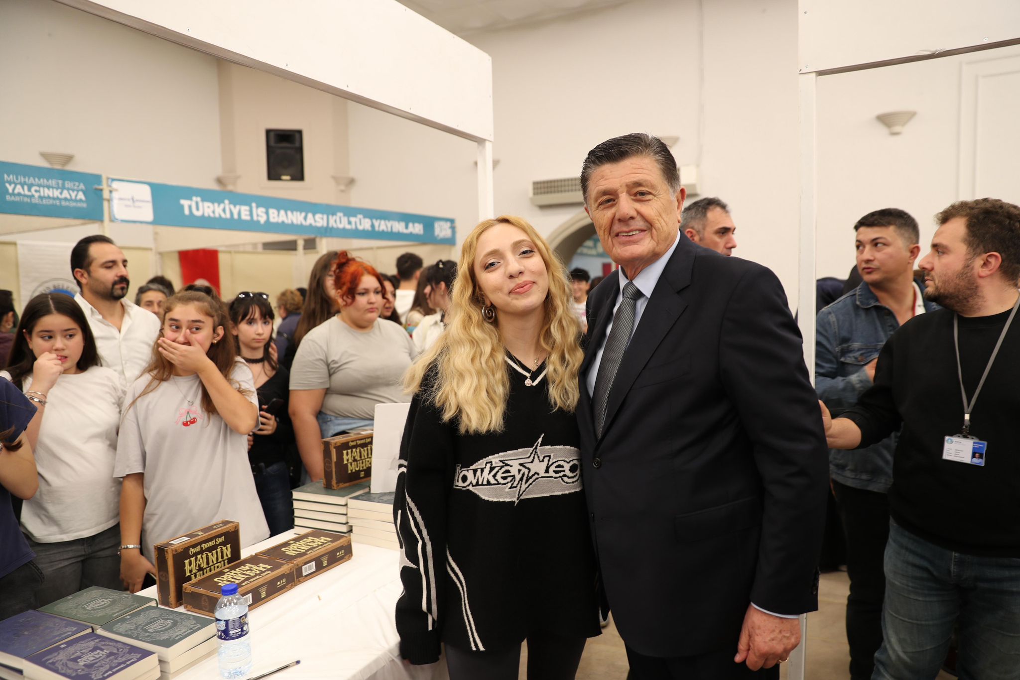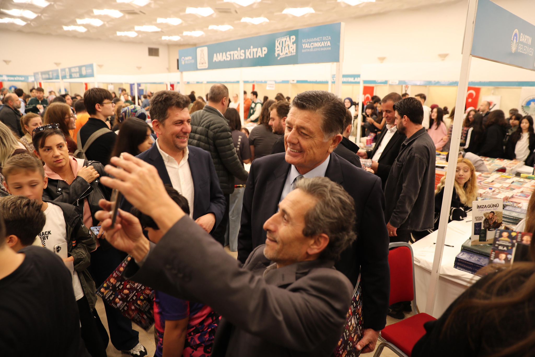 Kitap sever vatandaşlar, fuar ziyareti sırasında Başkan Yalçınkaya ile hatıra fotoğrafı çektirerek bu anlamlı günü ölümsüzleştirdi.