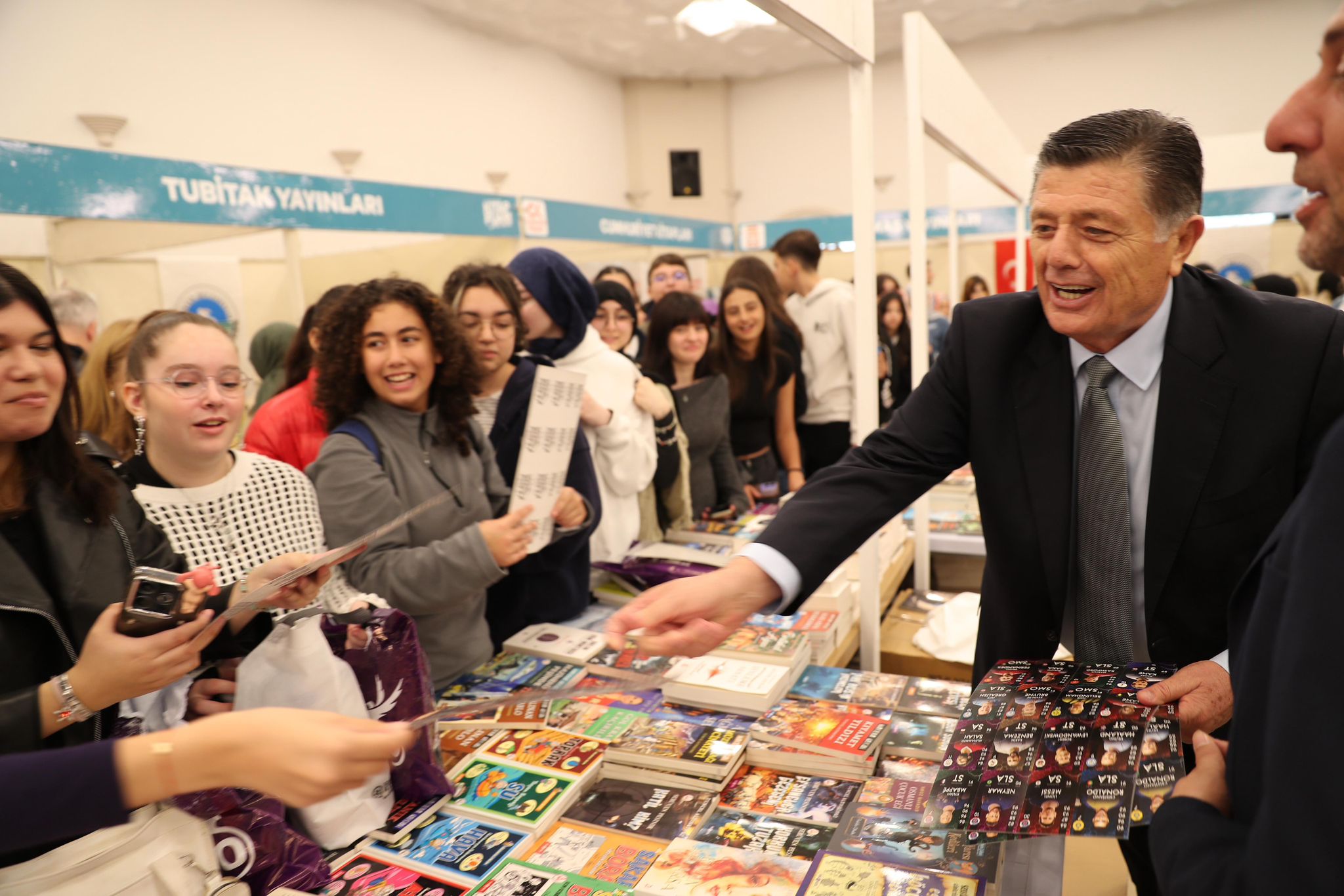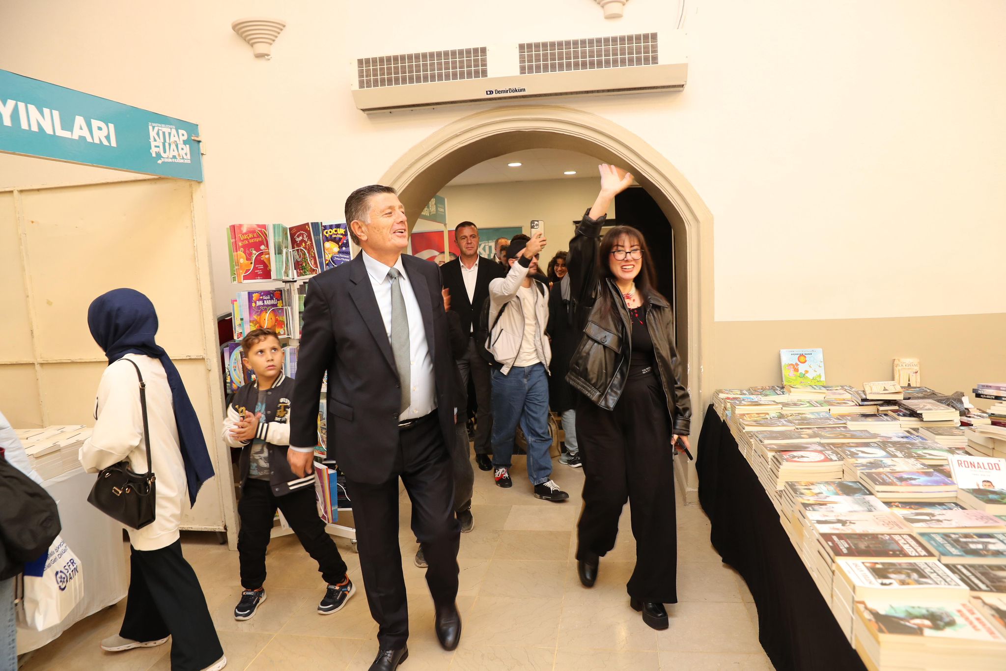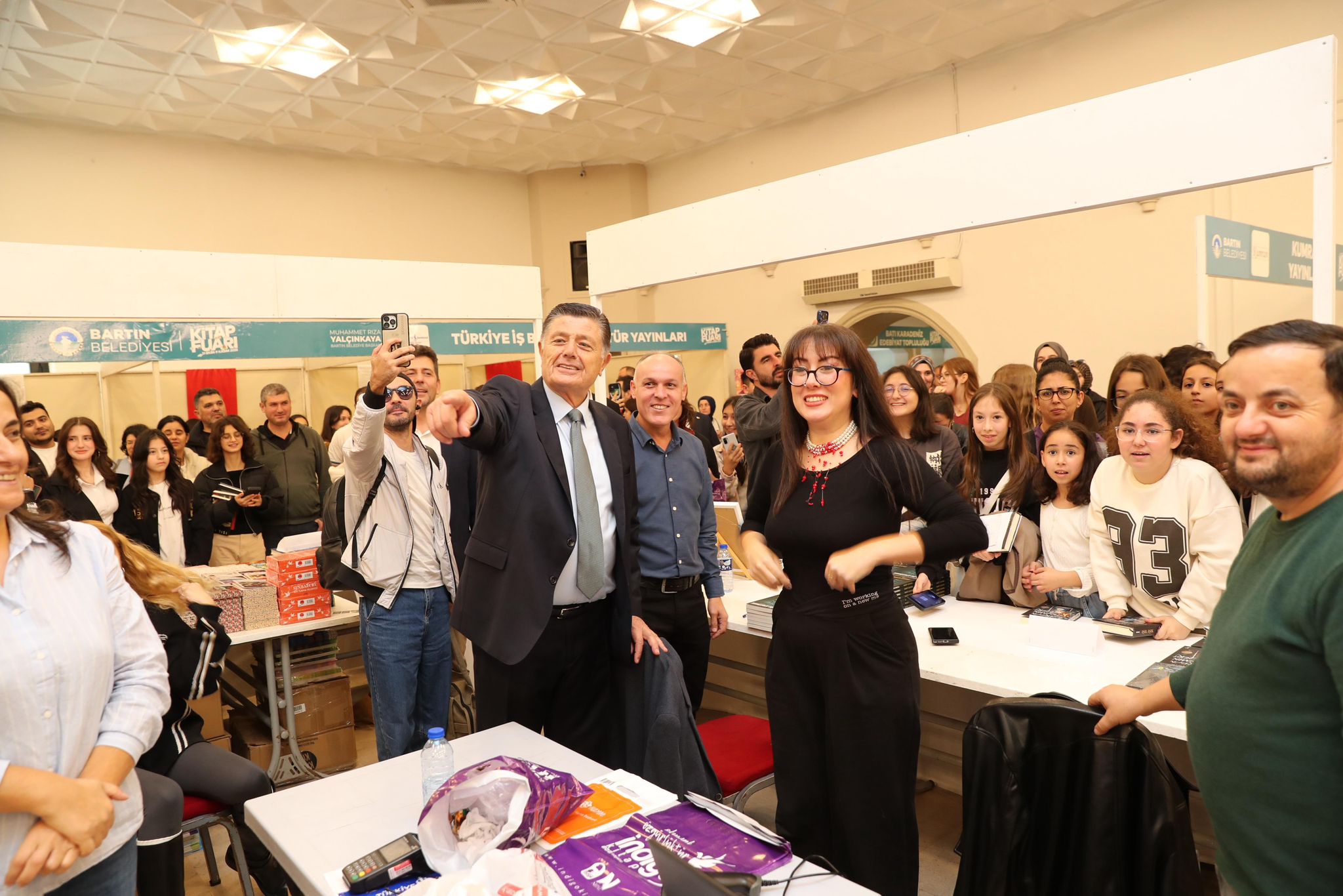 Kitap sever vatandaşlar, fuar ziyareti sırasında Başkan Yalçınkaya ile hatıra fotoğrafı çektirerek bu anlamlı günü ölümsüzleştirdi.