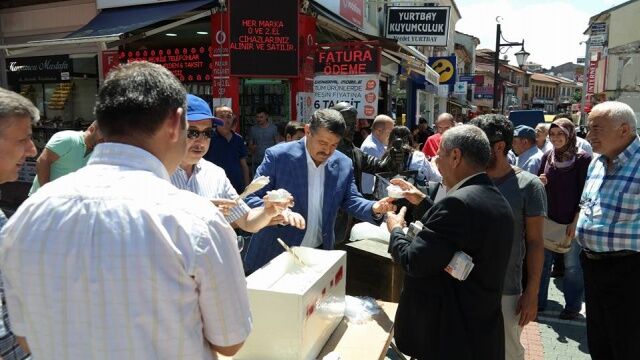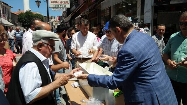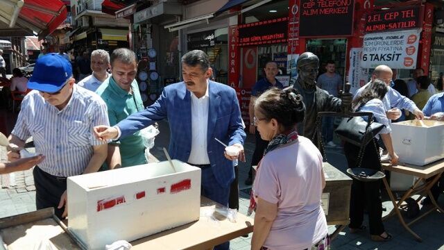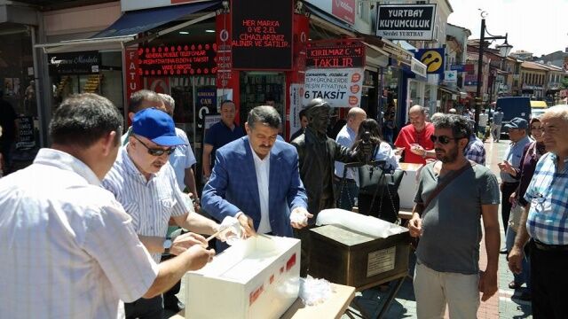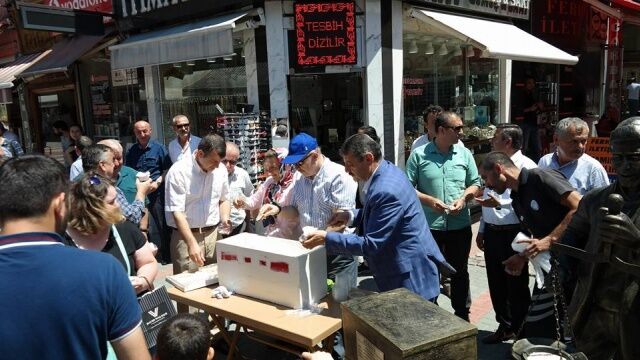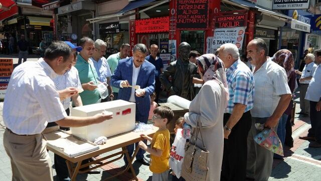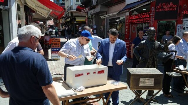 Bartın'da Ağdacı Heykeli önünde 2000 kişiden fazla vatandaşa Bartın'ın geleneksel meşhur tatlısı olan Ağda dağıtıldı.
