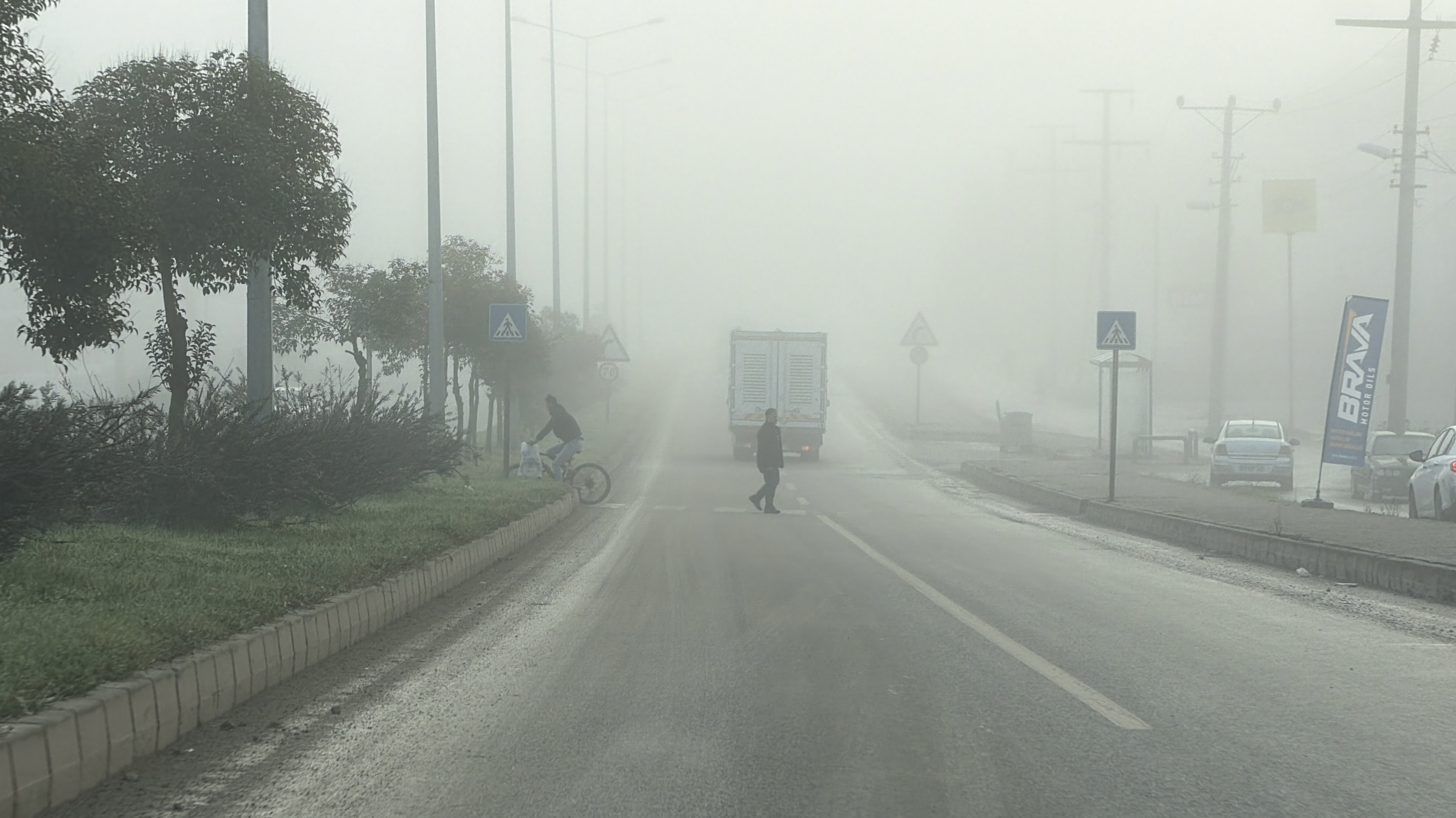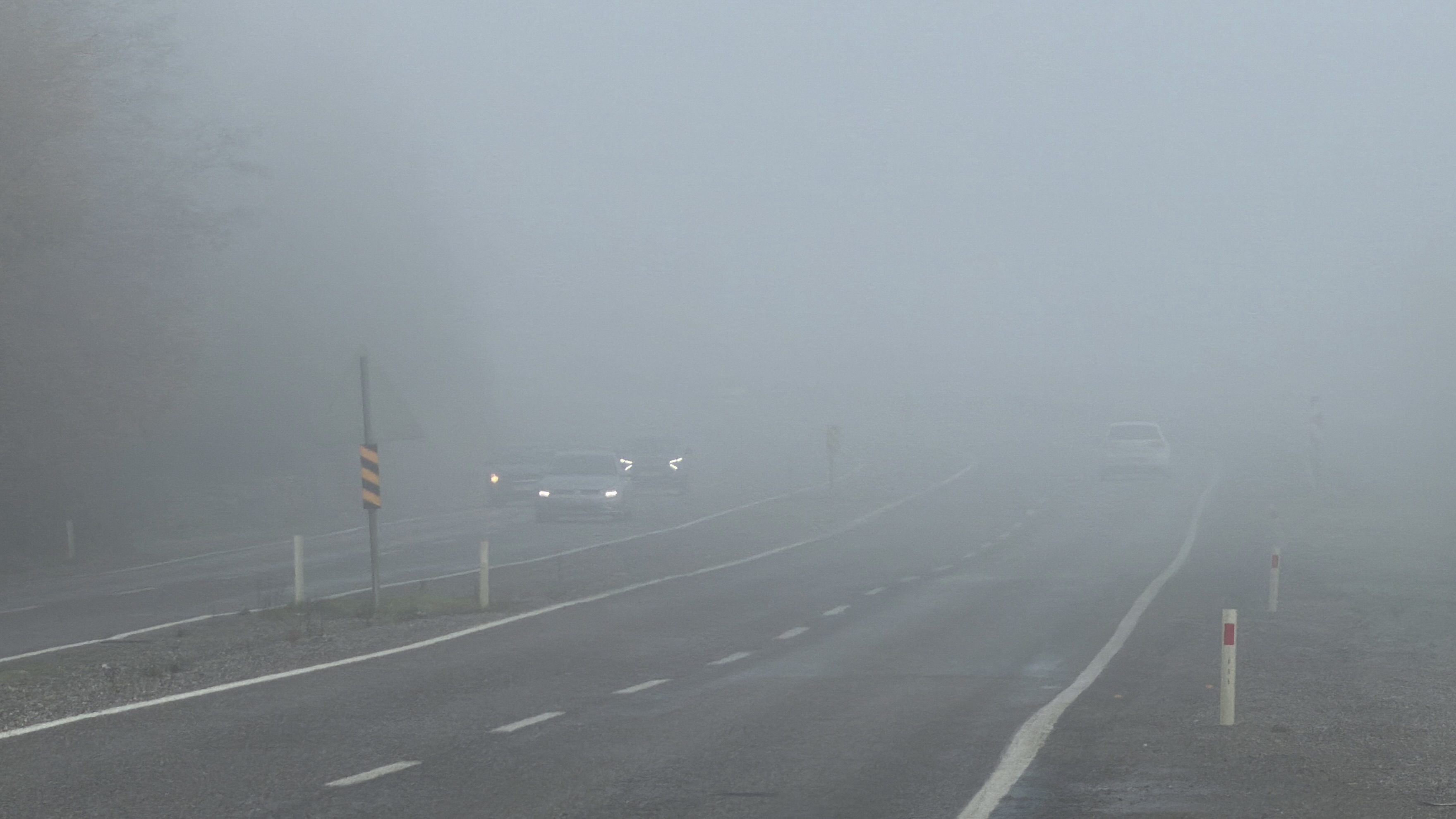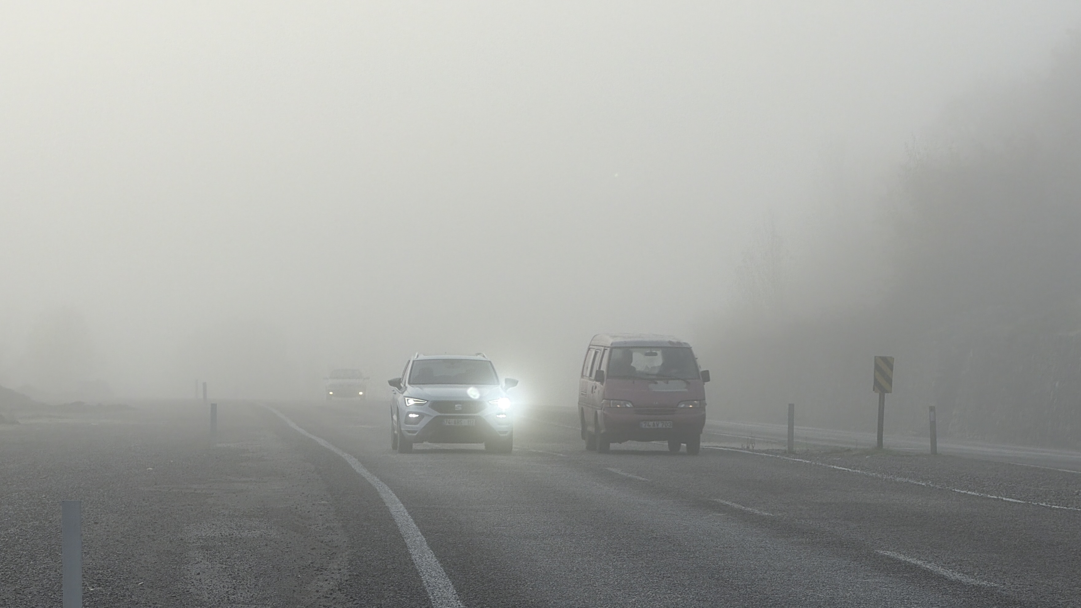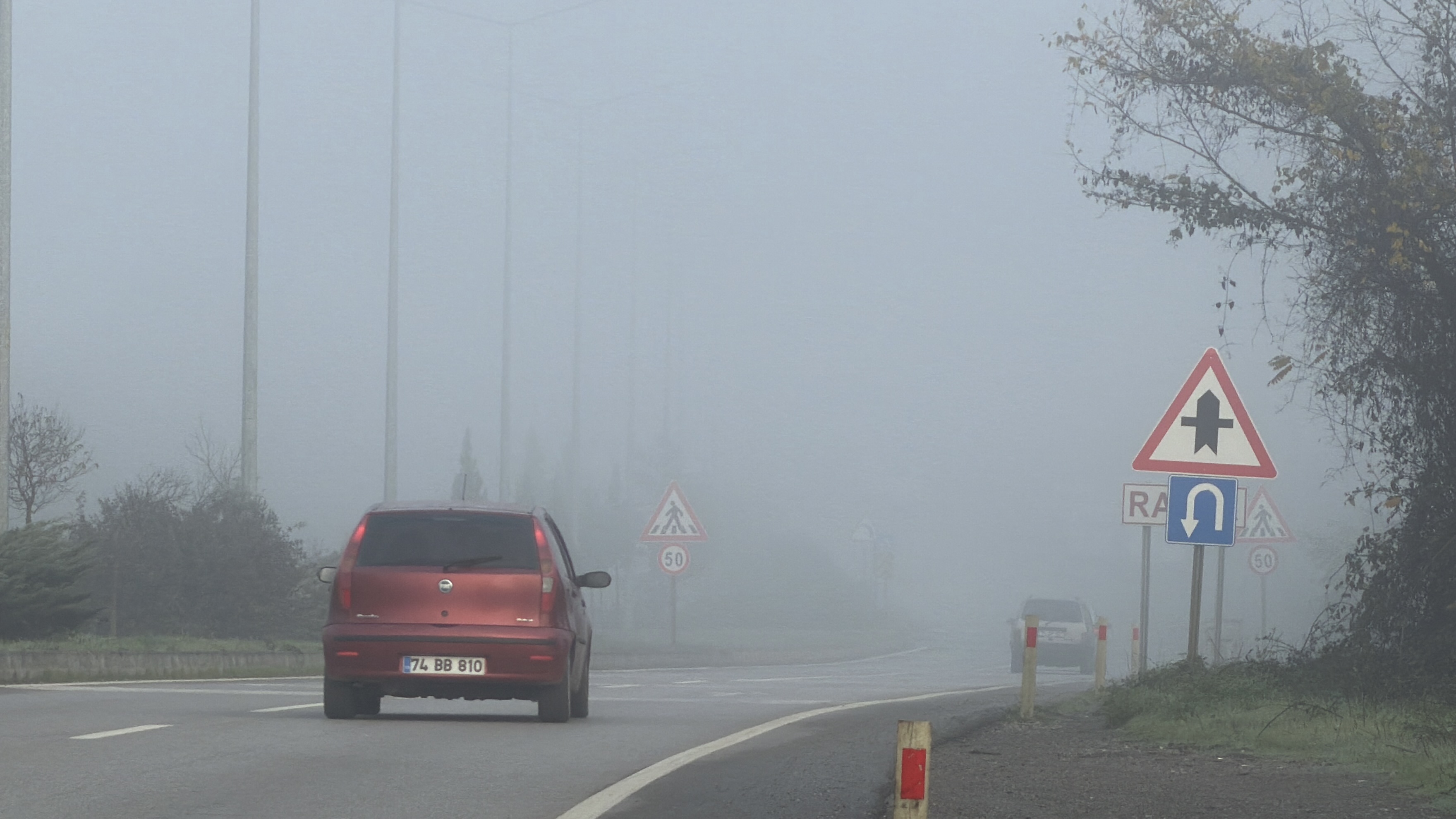 BARTIN'da sabah saatlerinde etkili olan sis nedeniyle görüş mesafesi 15 metreye düştü, sürücüler araçları ile kontrollü ilerledi.