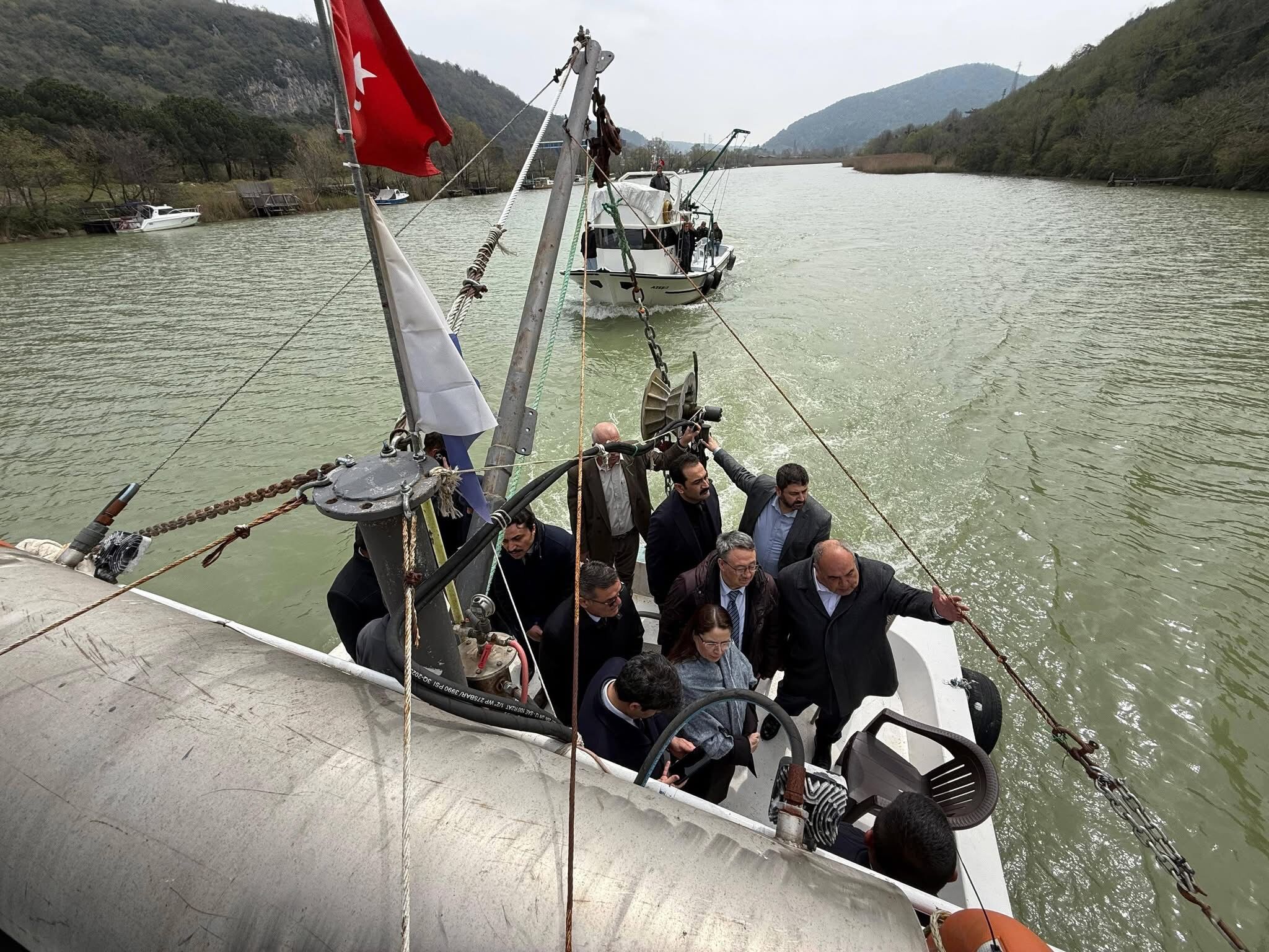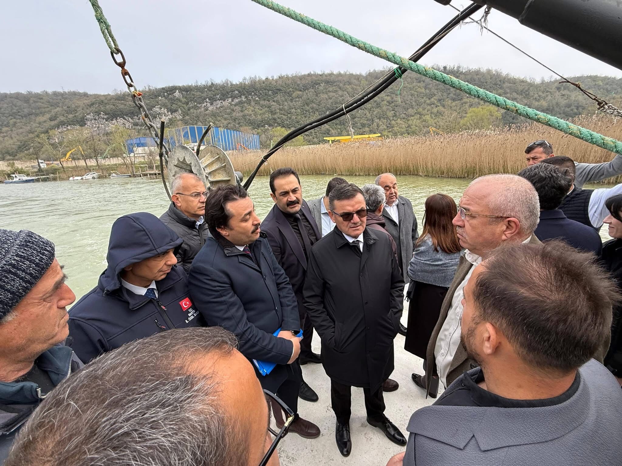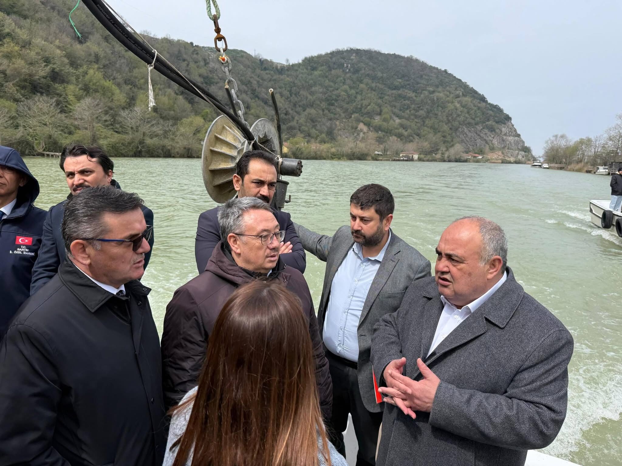 Vali Dr. Nurtaç Arslan, AK Parti Bartın Milletvekili Yusuf Ziya Aldatmaz, Tarım ve Orman Bakanlığı Su Ürünleri Genel Müdürlüğü Kaynak Yönetimi ve Balıkçılık Yapıları Daire Başkanı Melih Er, Ulaştırma ve Altyapı Bakanlığı 13. Bölge Müdür Yardımcısı Aşkın Ozan, DSİ 23. Bölge Müdür Yardımcısı Özgün Taşçı, Bartın Su ürünleri Kooperatifi Başkanı Özkan Beske, tekne ile Bartın Irmağı'nda inceleme yaptı.