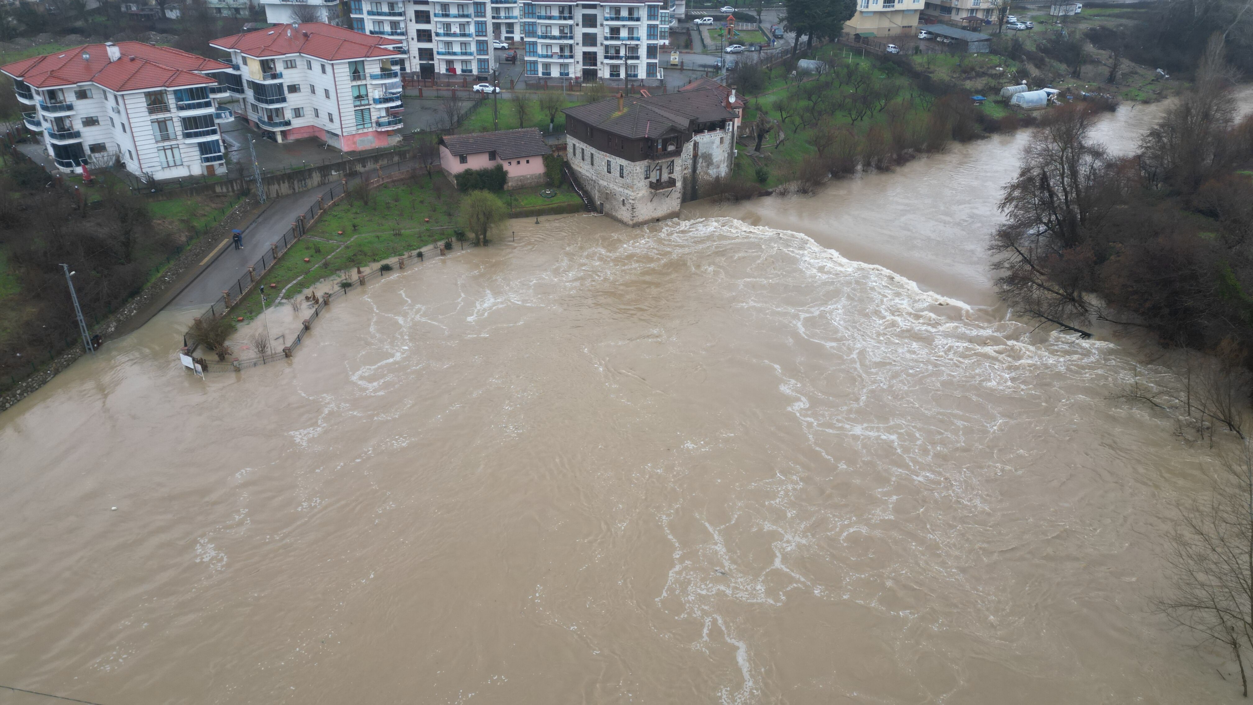 Bölge araç ve yaya trafiğine kapatılırken, İl Afet ve Acil Durum Müdürlüğü, polis ve belediye ekipleri de taşkın riskine karşı ırmak boyunca kontrollerini sürdürüyor.