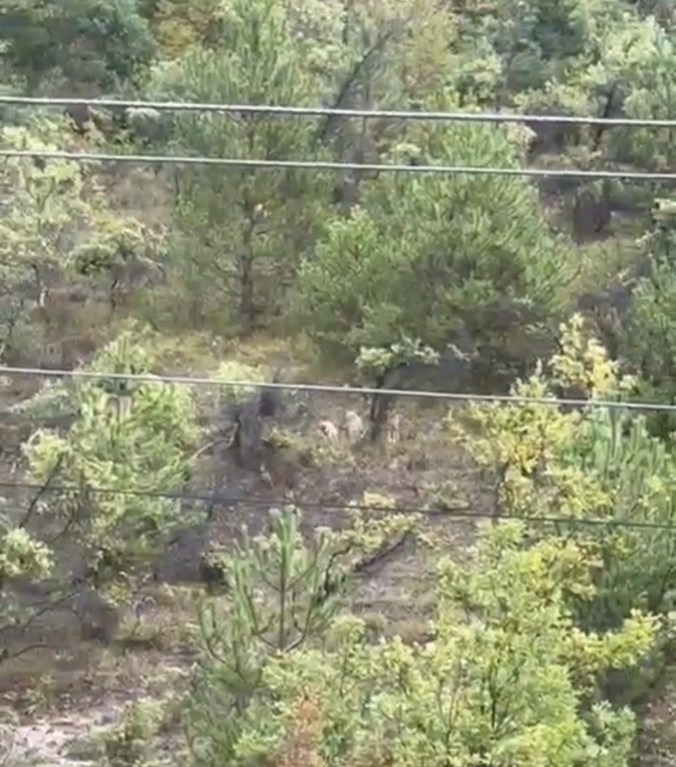 Orduyeri Mahallesi’nde çalılık alanda 3 kurt gören vatandaşlar, o anlar cep telefonuyla kayda aldı.