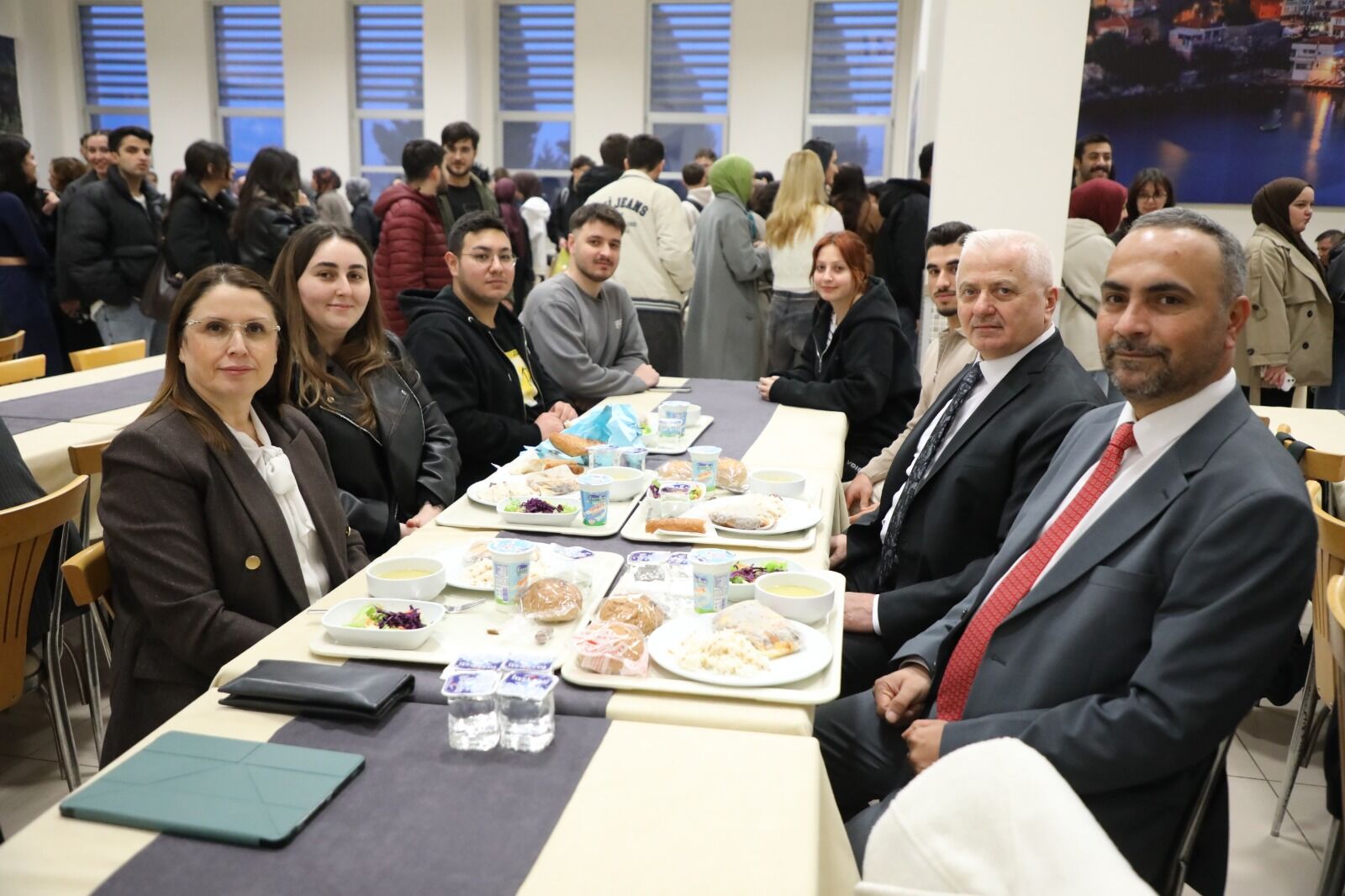 İftar öncesinde Vali Arslan, BARÜ Rektörü Prof. Dr. Ahmet Akkaya ve MÜSİAD Bartın Şube Başkanı Muhammet Aksoy öğrencilerin masalarını gezerek gençlerle sohbet etti. Samimi bir atmosferde gerçekleşen programda birlik ve beraberlik mesajları verilirken, toplumsal dayanışmanın önemine dikkat çekildi.