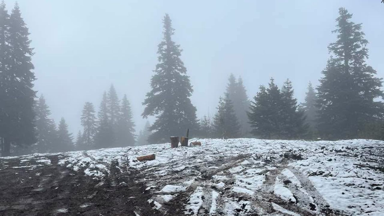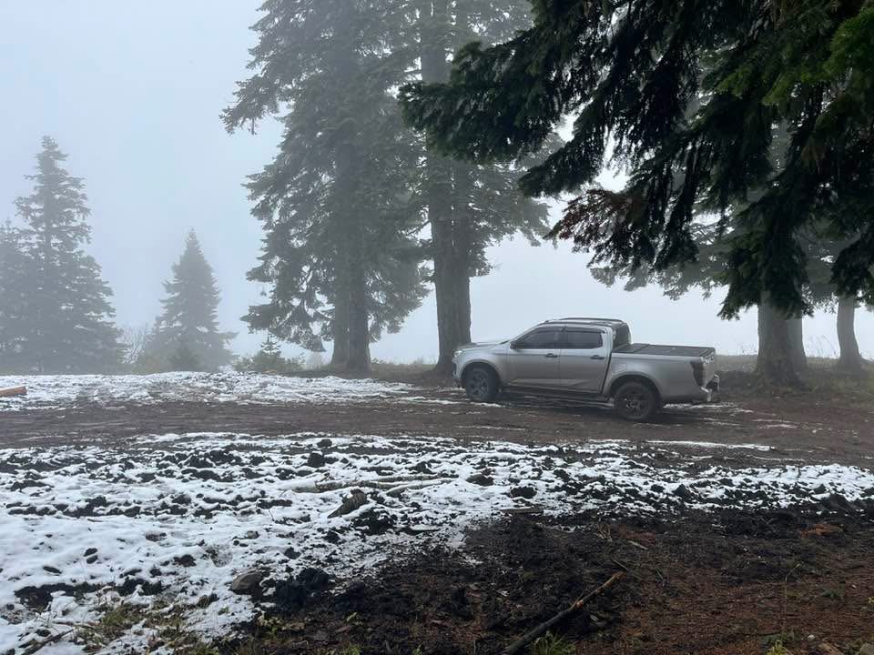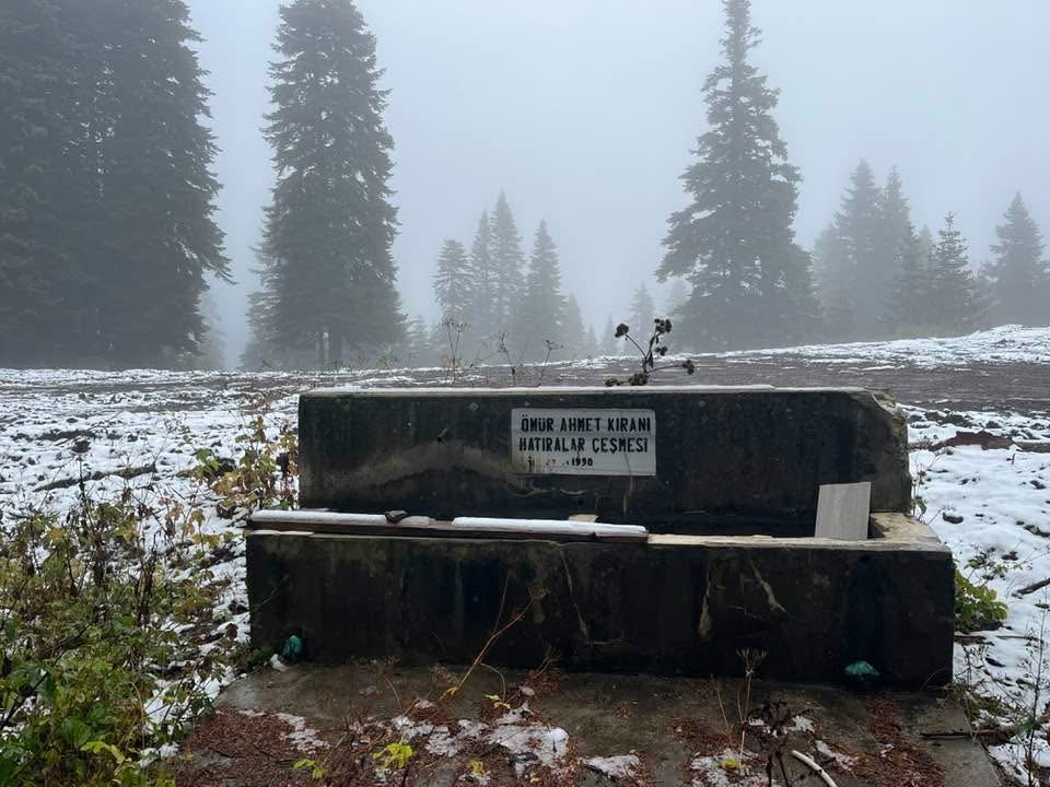 Bölgedeki orman işçileri, beyaz örtü ile kaplanan alanları cep telefonuyla görüntüledi.