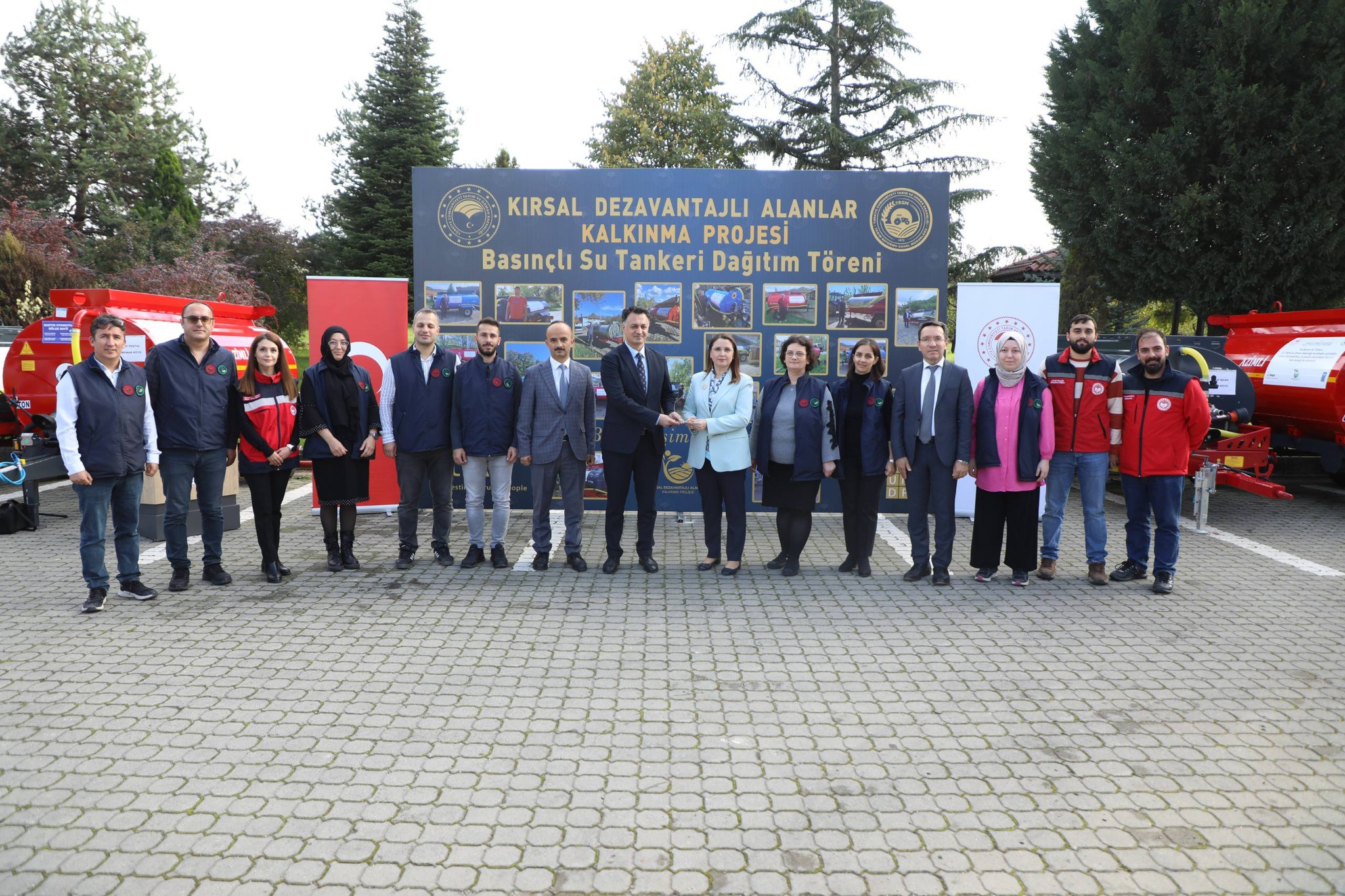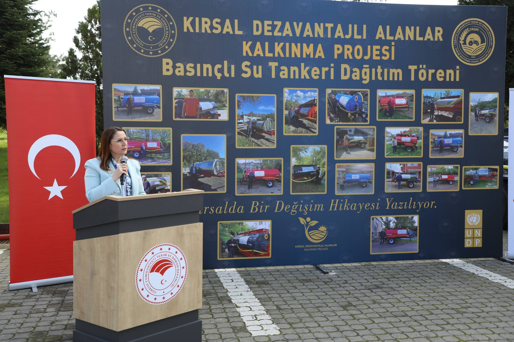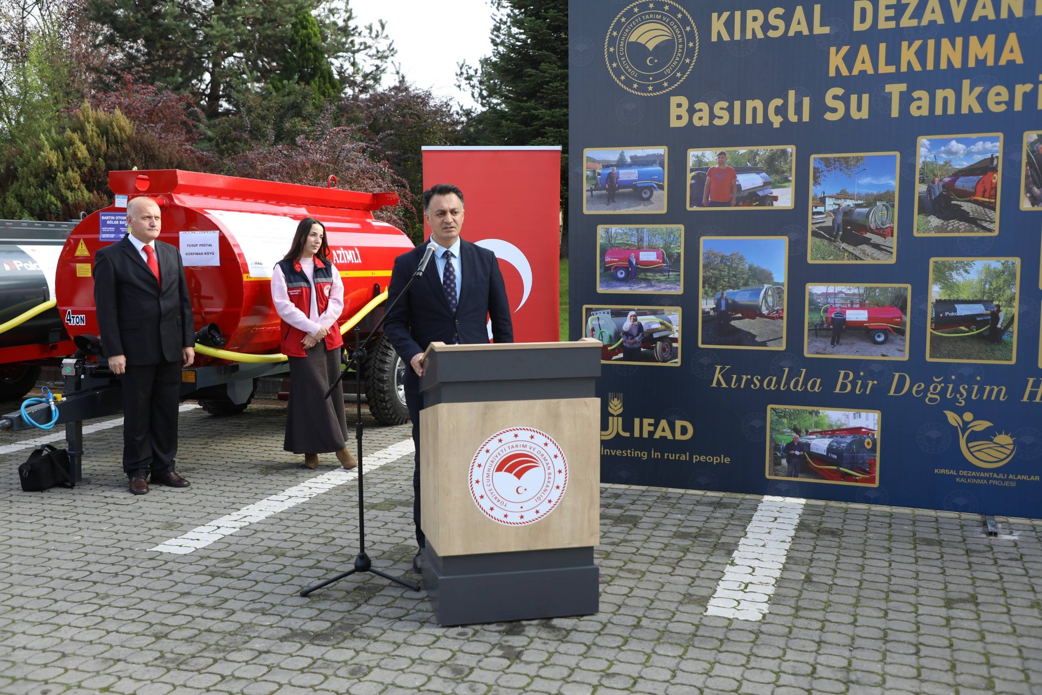 Tarım ve Orman Bakanlığı Kırsal Dezavantajlı Alanlar Kalkınma Projesi (KDAKP) çerçevesinde yürütülen Makine ve Ekipman Desteklemeleri programı kapsamında “Basınçlı Su Tankeri” dağıtım töreni düzenlendi.