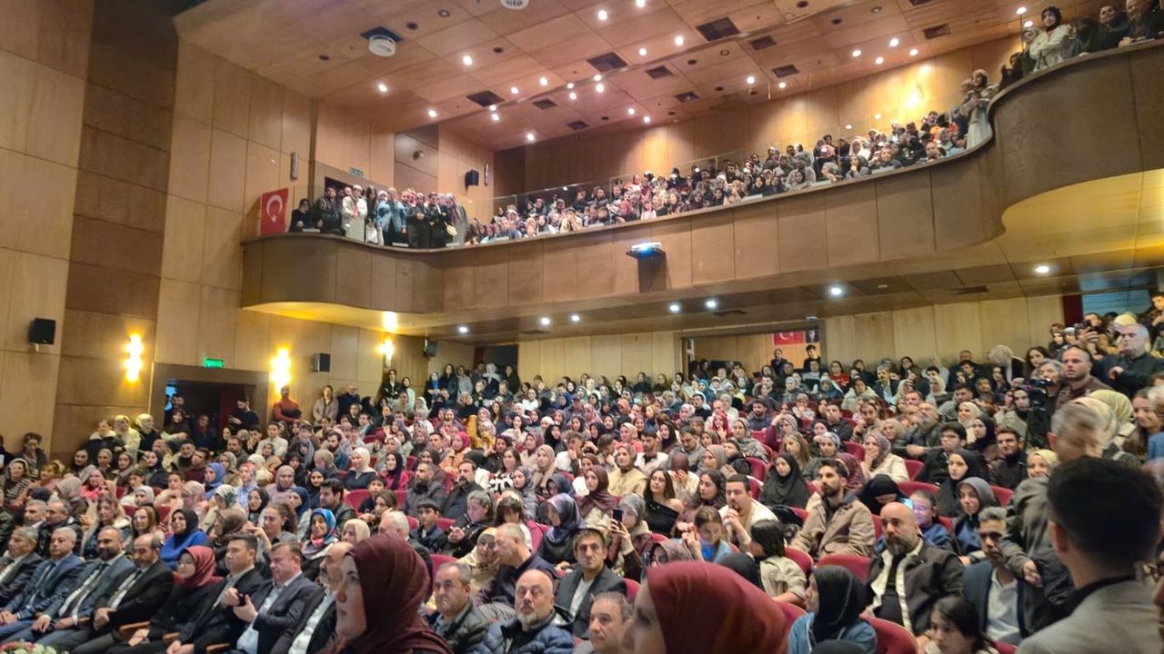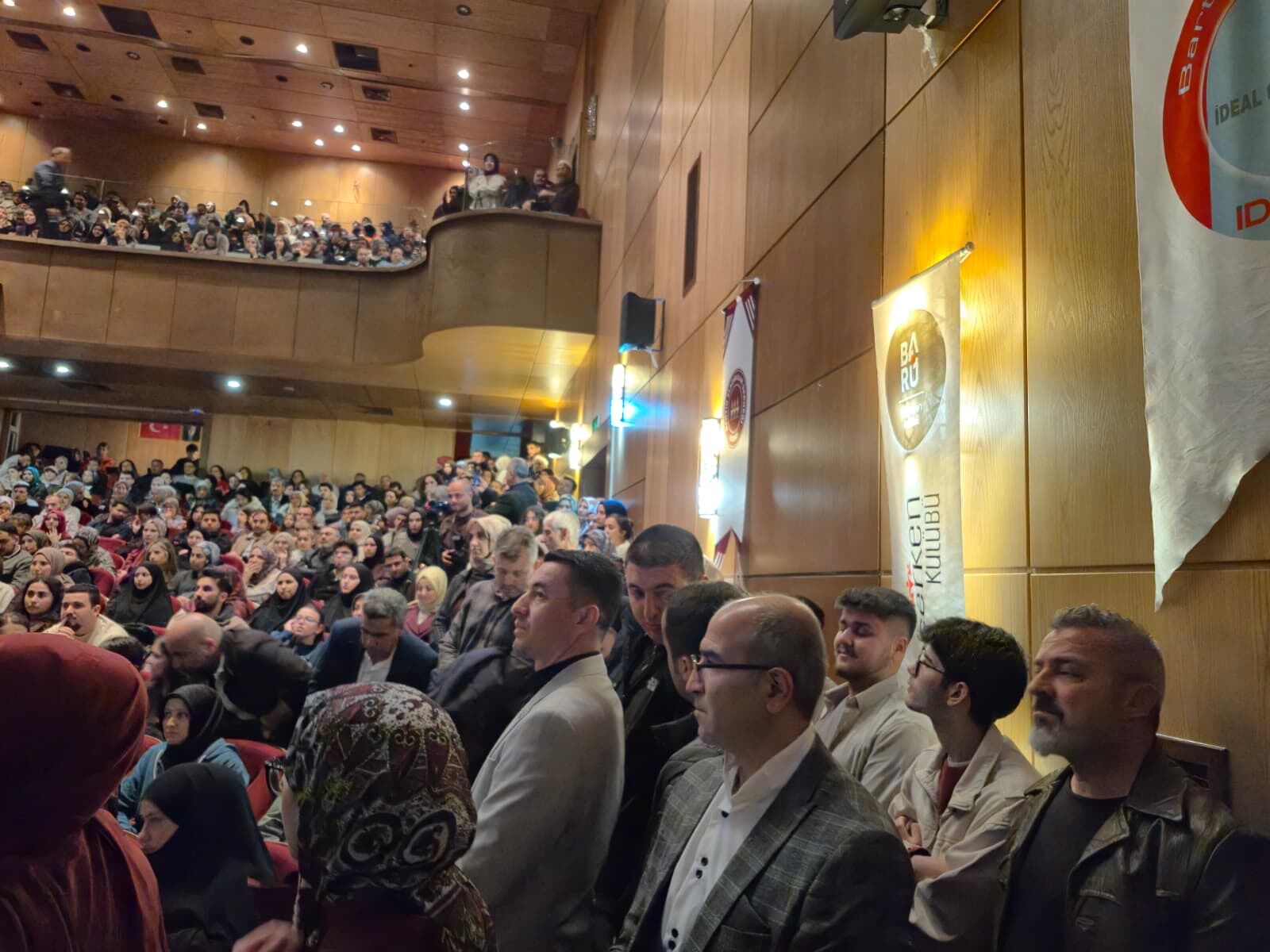 Bartın Kültür Merkezi’nde gerçekleştirilen etkinlikte salon tamamen dolarken, çok sayıda kişinin programı ayakta takip ettiği gözlendi.
