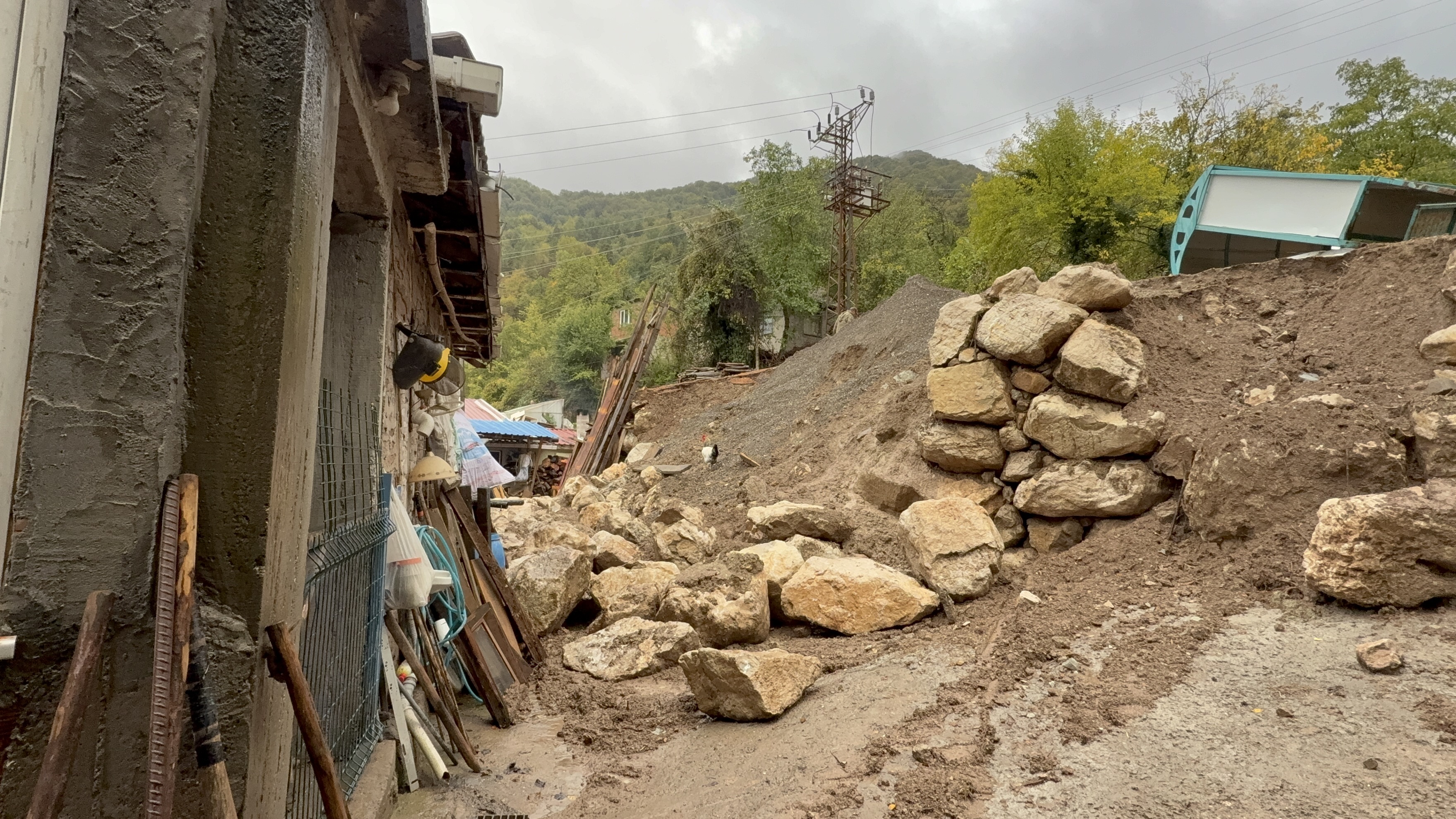 Ev sahibi Ersin Ketim, “Dün gece saatlerinde aşırı yağıştan sonra bir anda gürültü geldi. Dışarı çıktığımızda duvarın çöktüğünü gördük. Korktuk, hemen yetkililere haber verdik. Onlar da gelip yardımcı oldular” dedi.