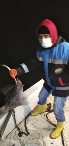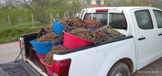 BARTIN’da Tarım ve Orman Müdürlüğü ekiplerı, kacak olarak denize bırakılan ağları topladı. Ağlara takılan 150 kilogramlık kalkan balığını denize bıraktı.
