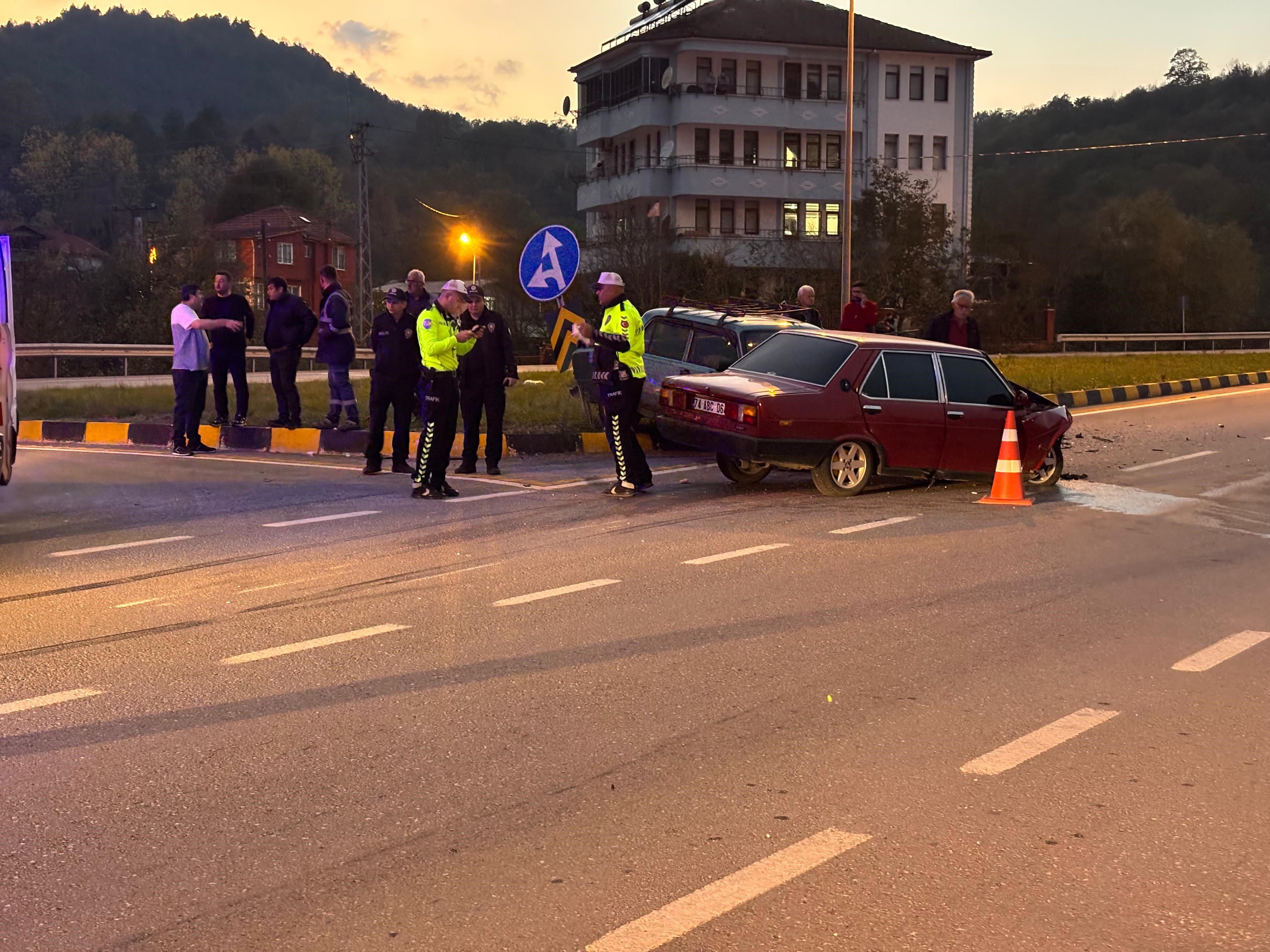 Edinilen bilgiye göre, Bartın'dan Kurucaşile istikametine seyir eden ve sürücüsü henüz belirlenemeyen 74 ABC 064 plakalı otomobil, Karaçay Kavşağı'nda S.A. idaresindeki 74 BK 380 plakalı otomobille çarpıştı.