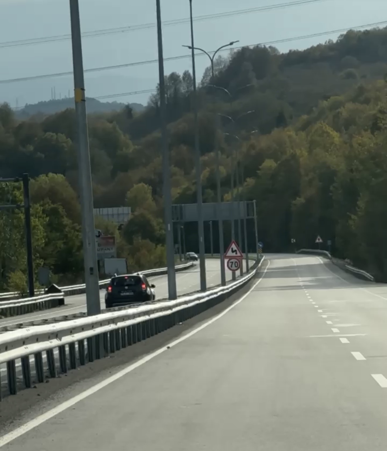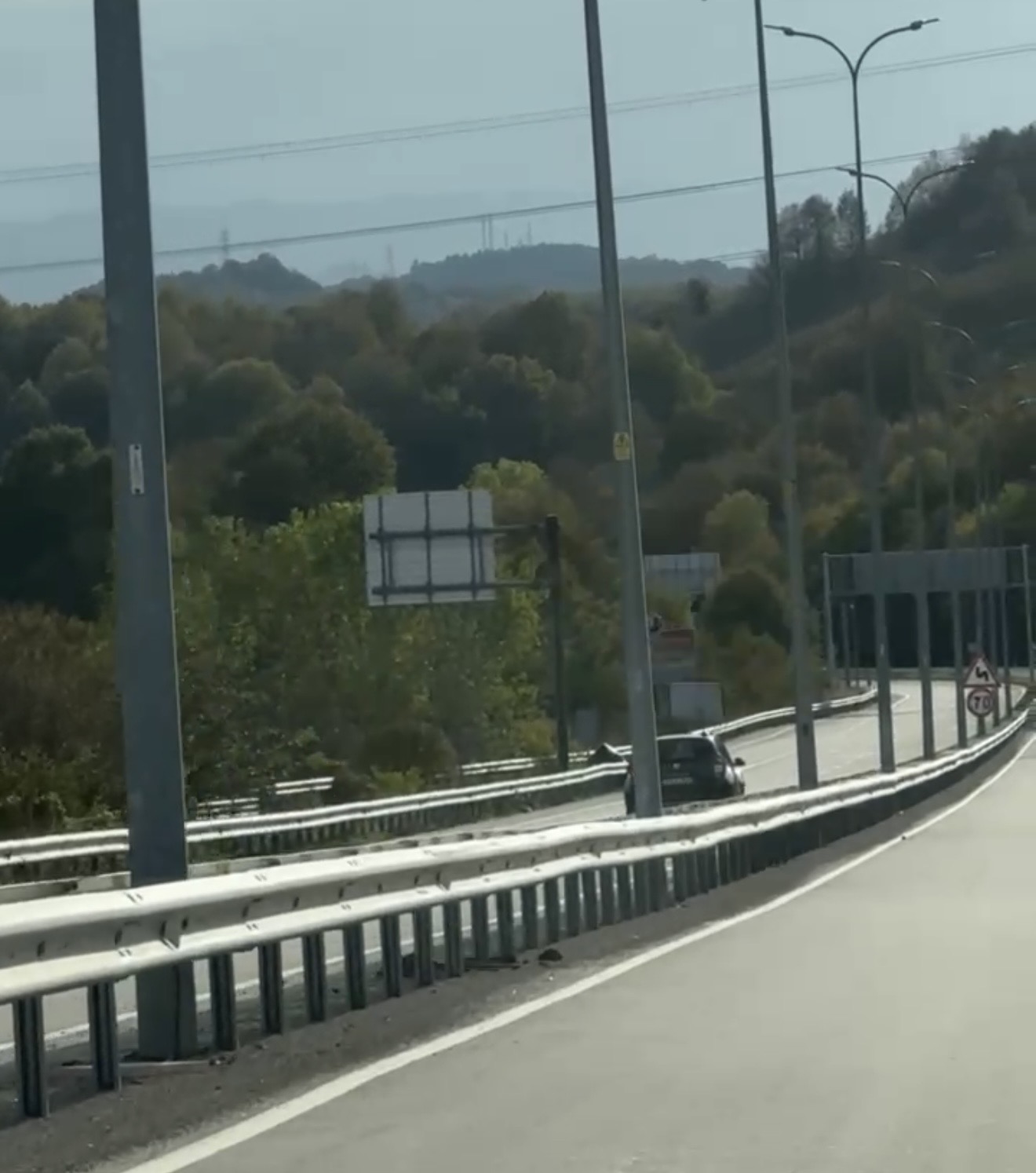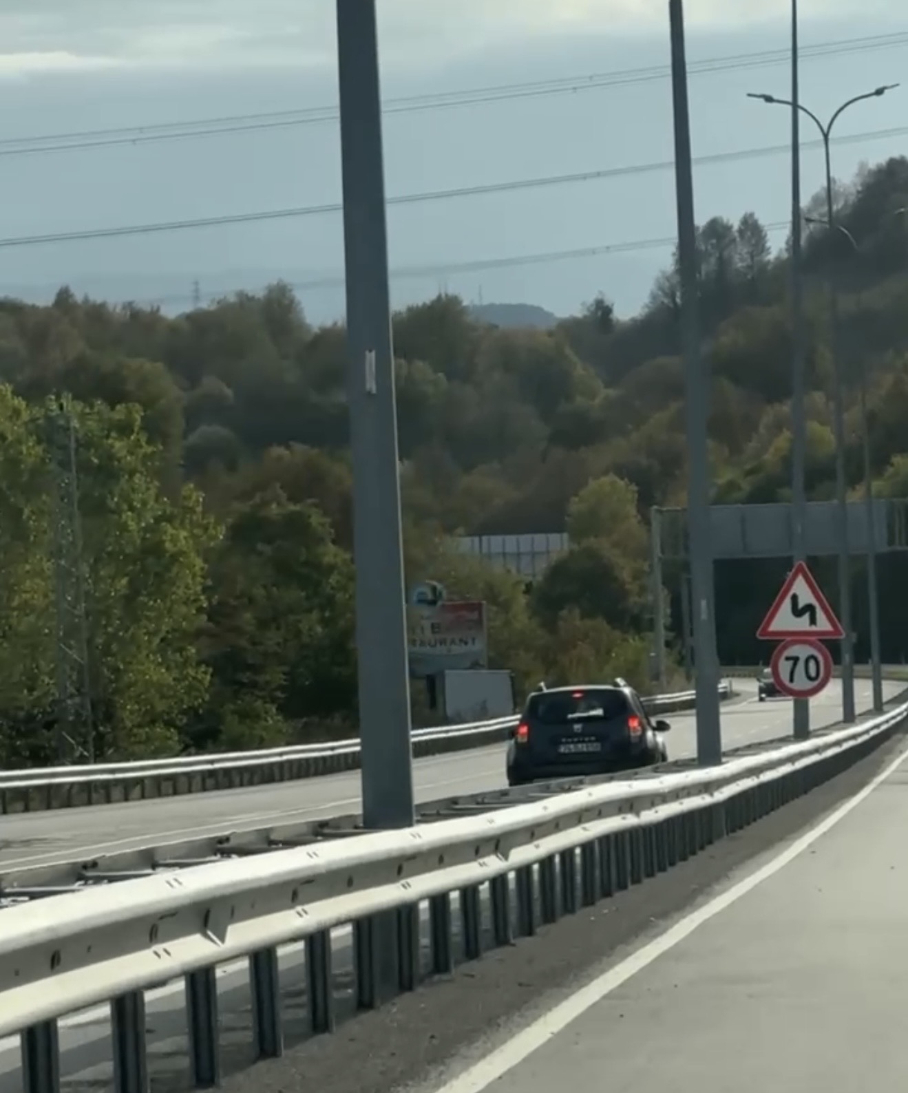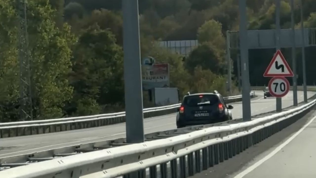 Bartın-Amasra kara yolunun Uğurlar mevkisinde, dün ters yönde ilerleyen bir cip, başka bir sürücü tarafından cep telefonuyla görüntülendi.