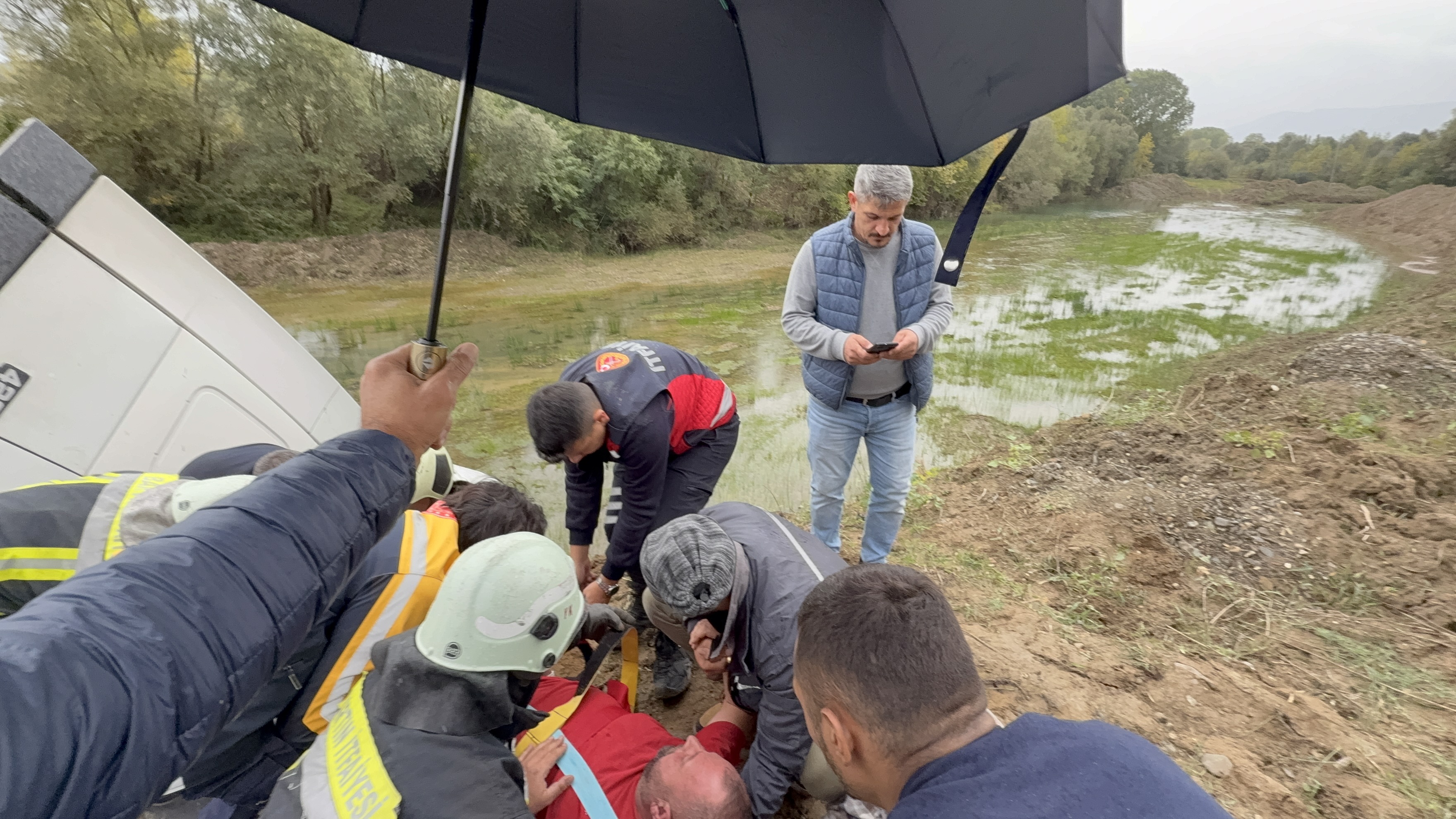 Otomobil yol kenarına savrulurken, TIR ise ırmağa devrilmekten son anda kurtuldu. İhbar üzerine bölgeye sağlık, itfaiye, polis ve jandarma ekipleri sevk edildi.
