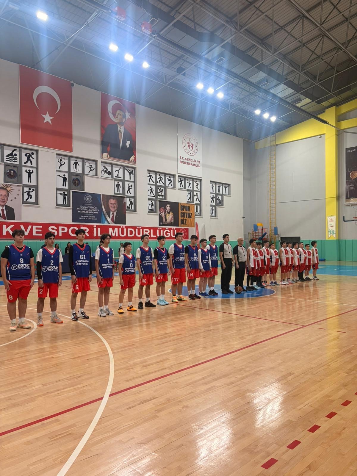 Müsabakalar öncesinde düzenlenen anlamlı etkinlikte, “Bayrak Sevgisi” teması öne çıktı. U-16 Basketbol Sporcuları, Türk bayrağı ile sahaya çıkarak ay yıldızlı bayrağa olan sevdayı sporun coşkusu, gençliğin enerjisi ve millet olma bilinciyle bir kez daha gözler önüne serdi. Bayrak Haftası kapsamında gerçekleştirilen etkinlik, izleyenlerden büyük alkış aldı.