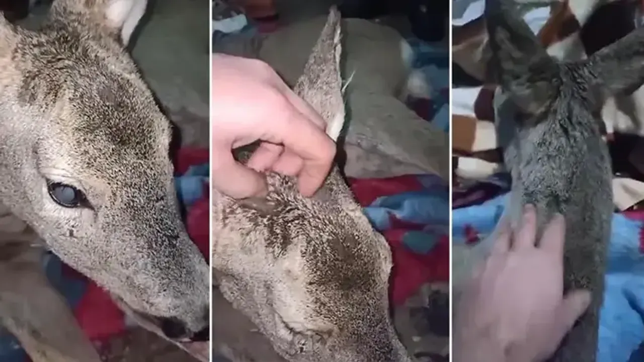 Burada karacaya bakıp, seven köylünün o anları, cep telefonu ile görüntülendi. Daha sonra köylü, yaralı karacayı Doğa Koruma ve Milli Parklar Şube Müdürlüğü ekiplerine teslim etti.