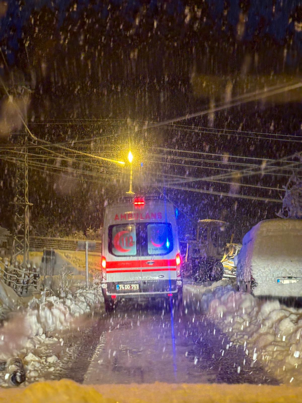 KASTAMONU’da kar yağışı nedeniyle yolu kapanan köyde rahatsızlanan Sezai Ünlü (75), Bartın İl Özel İdaresi ekiplerinin 2 saatlik çalışmasıyla ambulansla hastaneye kaldırılıp, tedaviye alındı.