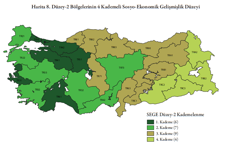 Öte yandan Bartın’ın da içinde bulunduğu TR81 Düzey-2 Bölgesi (Zonguldak, Karabük, Bartın), 2017’de ikinci gelişmişlik kademesindeyken bu yıl üçüncü kademeye gerileyerek kademesi değişen tek bölge oldu. (2017 SEGE)
