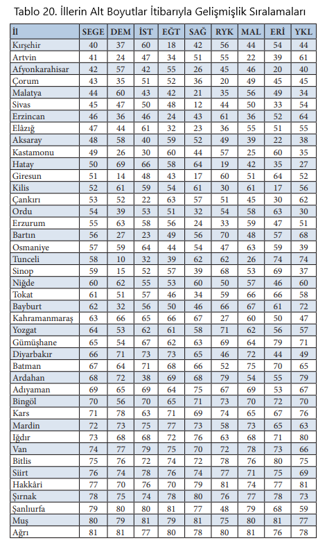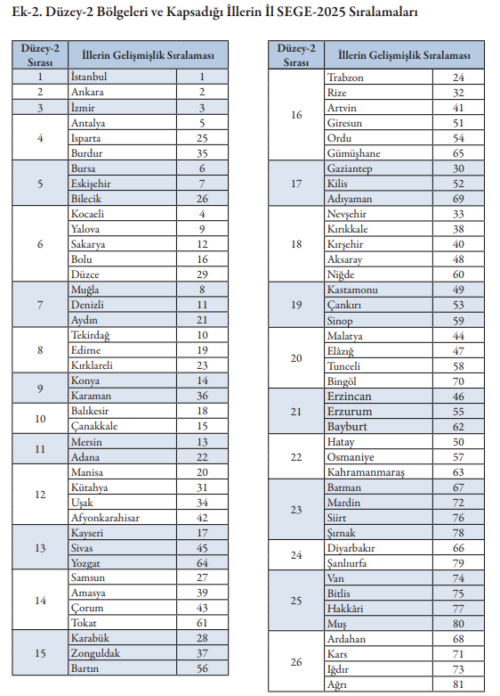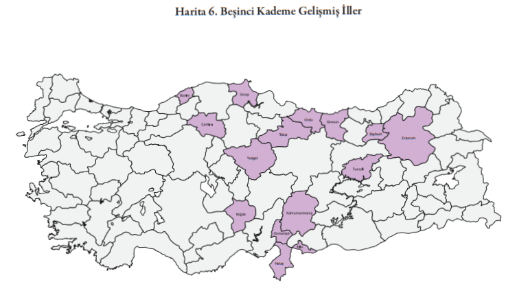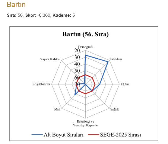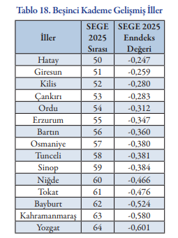 SEGE-2025 çalışmasında Türkiye genelinde 15 il beşinci gelişmişlik kademesinde yer aldı. Bu iller, genel olarak sosyo-ekonomik göstergelerde Türkiye ortalamasının altında kalıyor. Bartın ile birlikte Hatay da önceki dönemde bulunduğu dördüncü kademeden beşinci kademeye gerileyen iller arasında yer aldı.