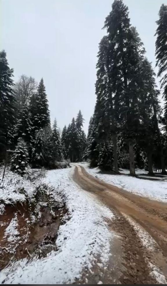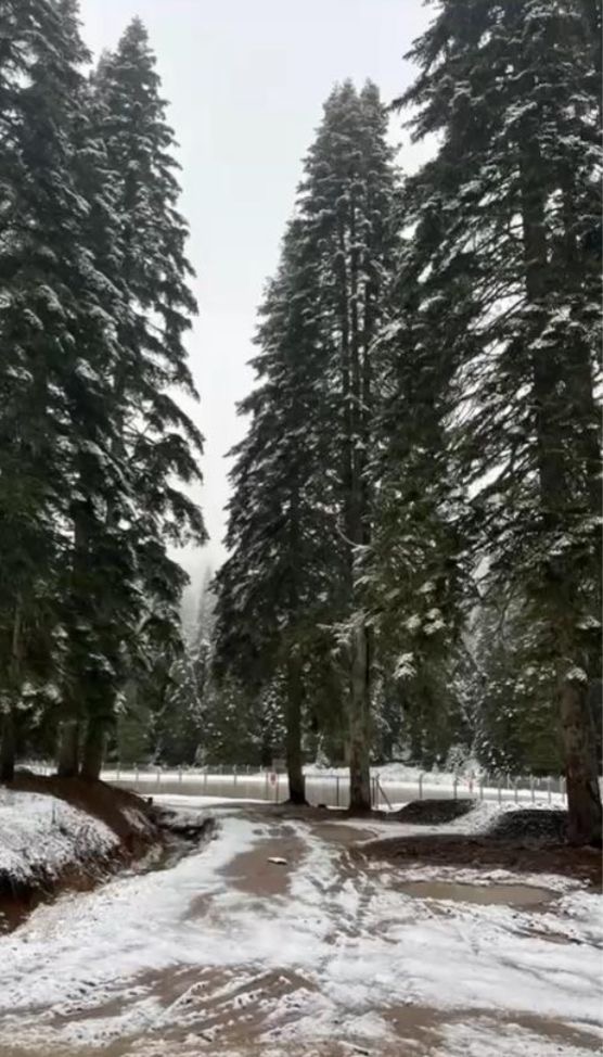 Bölgedeki orman işçileri, beyaz ile kaplanan alanları fotoğraflayıp, sosyal medyadan paylaştı. Kar yağışı, kısa süre sonra etkisini kaybetti.